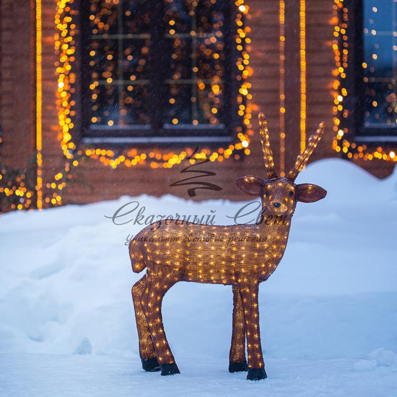 Акриловая светодиодная фигура "Бурый олень " 100 см, 380 светодиодов, IP 65, понижающий трансформатор в комплекте, NEON-NIGHT купить в интернет-магазине Сказочный свет