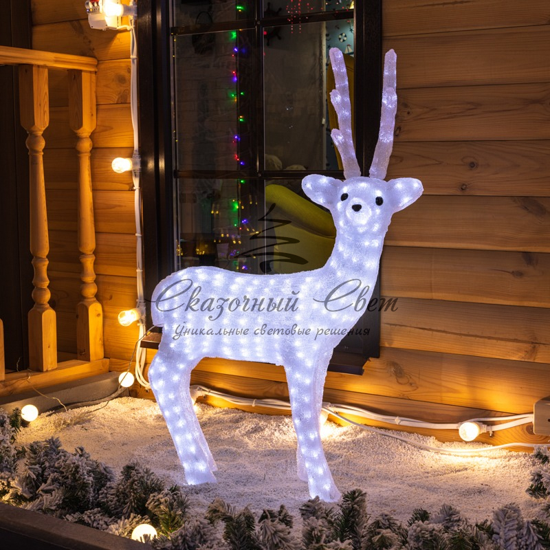 Акриловая светодиодная фигура Снежный олень 100 см, 380 светодиодов, IP 65, понижающий трансформатор в комплекте, NEON-NIGHT купить в интернет-магазине Сказочный свет