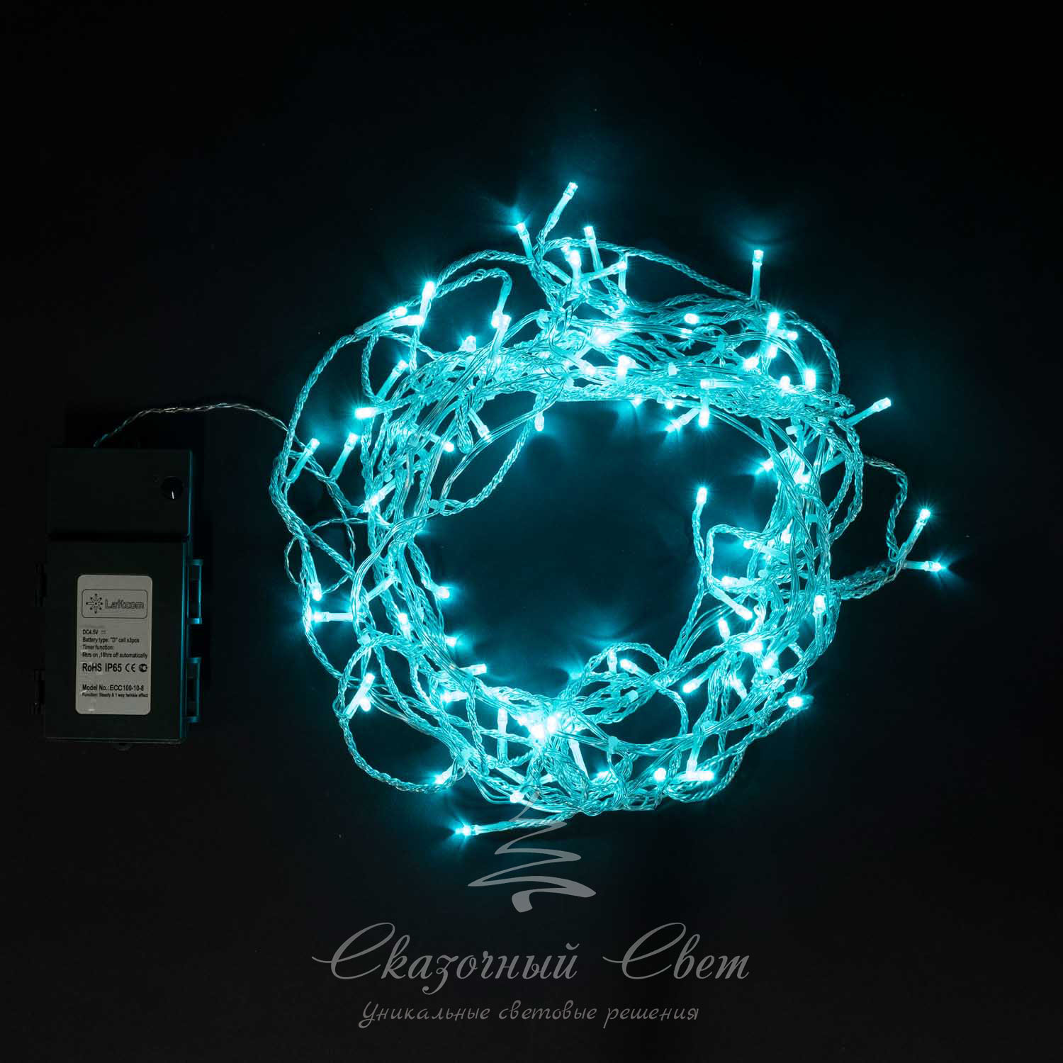 Гирлянда Бахрома на батарейках 3м, 3 бат. "D", 4,5V, прозр. пр., 100 led, аква купить в интернет-магазине Сказочный свет