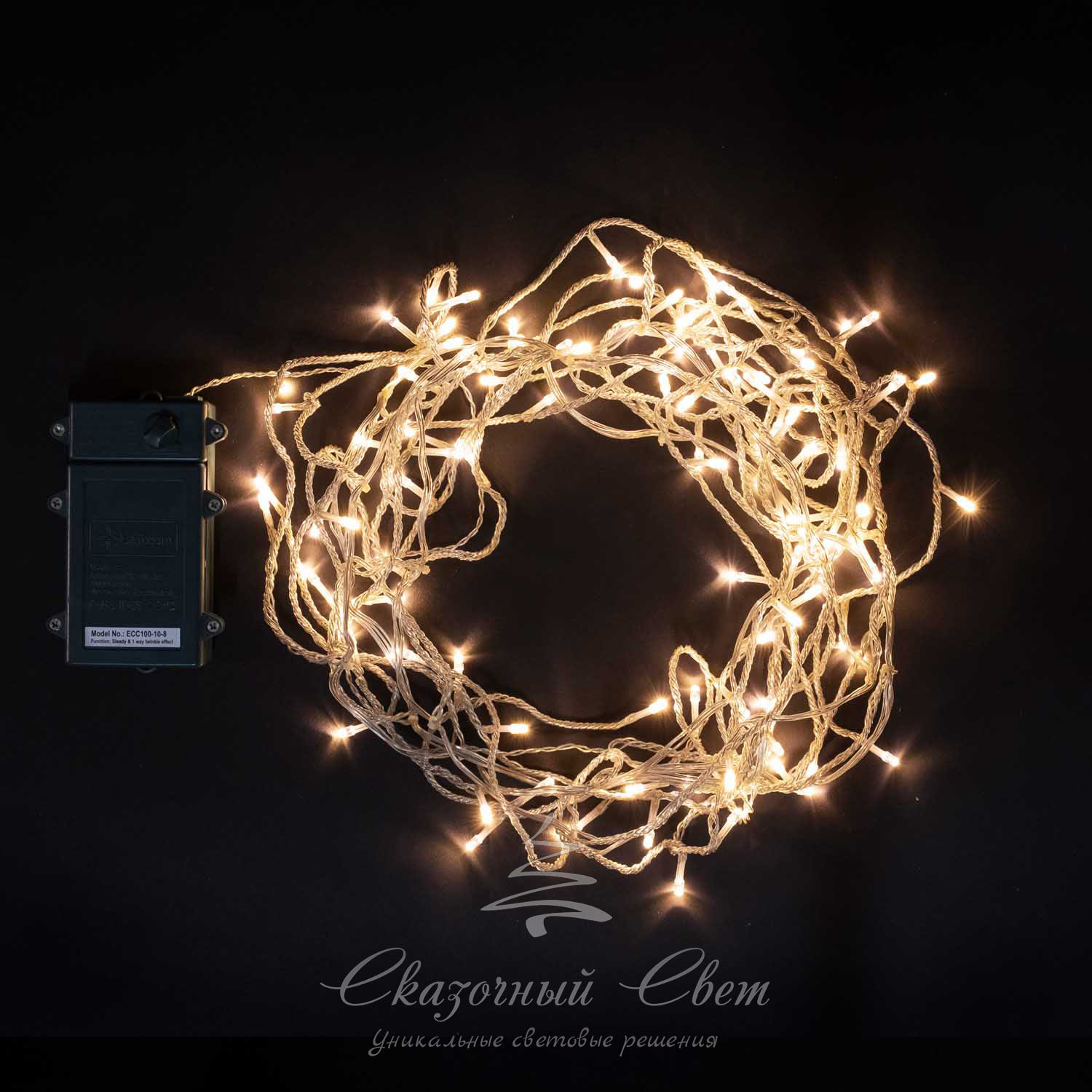 Бахрома на батарейках 3м, 3 бат. "D", 4,5V, прозр. пр., 100 led, шампань купить в интернет-магазине Сказочный свет