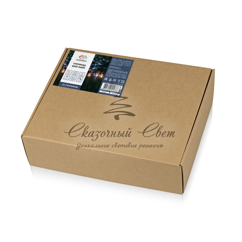 «Белт-Лайт» – популярная гирлянда для украшения фасадов домов, зданий, создания перетяжек между деревьями, столбами. Также такие гирлянды широко используются в украшении кафе, ресторанов, на свадебных площадках и в фотозонах. 10-метровый шнур оснащен 20 подвесными патронами с цоколем Е27. Патроны располагаются на иллюминационном кабеле с шагом 50 см. Для подключения к сети предусмотрен 3-метровый шнур с евровилкой. Для удобства использования предусмотрена возможность соединения гирлянды до 4-х комплектов. Провод находится в надежной изоляции из морозостойкого каучука. Вся конструкция защищена от влаги и пыли по стандарту IP44, поэтому предполагается размещение как дома, так и на улице. Гирлянда длиной 10 метров станет прекрасным украшением интерьера или экстерьера.