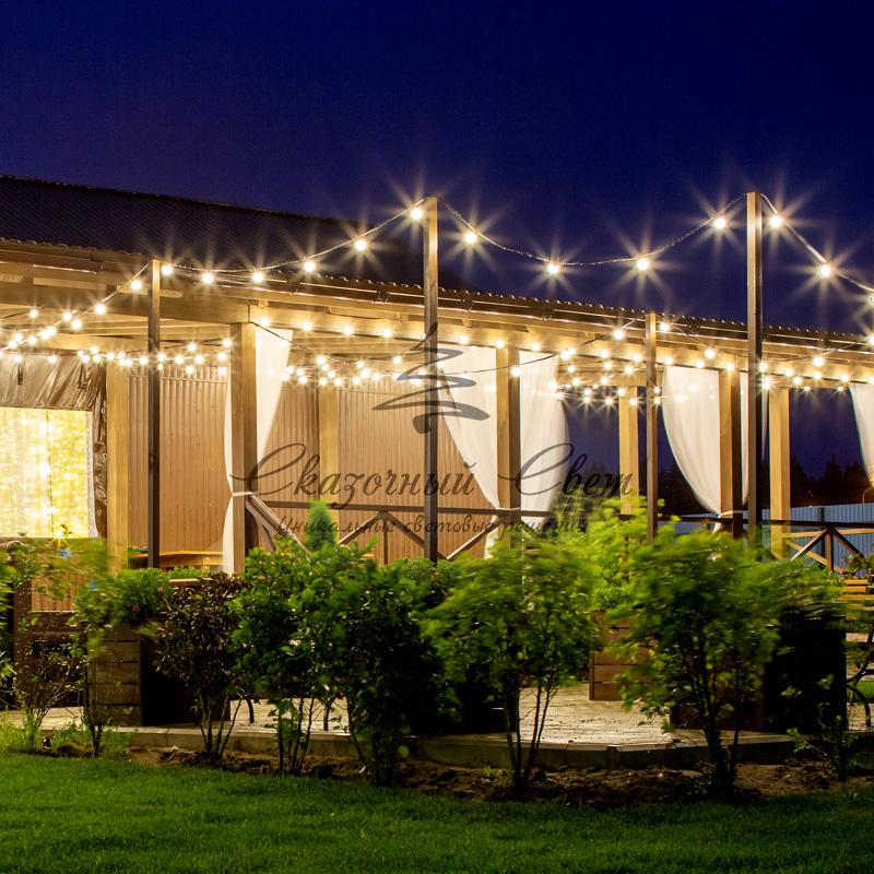 «Белт-Лайт» – популярная гирлянда для украшения фасадов домов, зданий, создания перетяжек между деревьями, столбами. Также такие гирлянды широко используются в украшении кафе, ресторанов, на свадебных площадках и в фотозонах. 20-метровый шнур оснащен 40 патронами с цоколем Е27. Патроны располагаются на иллюминационном кабеле с шагом 50 см. Для подключения к сети предусмотрен 3-метровый шнур с евровилкой. Для удобства использования предусмотрена возможность соединения гирлянды до 4-х комплектов. Провод находится в надежной изоляции из морозостойкого каучука. Вся конструкция защищена от влаги и пыли по стандарту IP44, поэтому предполагается размещение как дома, так и на улице. Гирлянда длиной 10 метров станет прекрасным украшением интерьера или экстерьера.