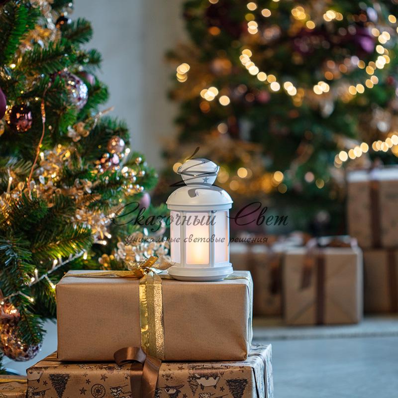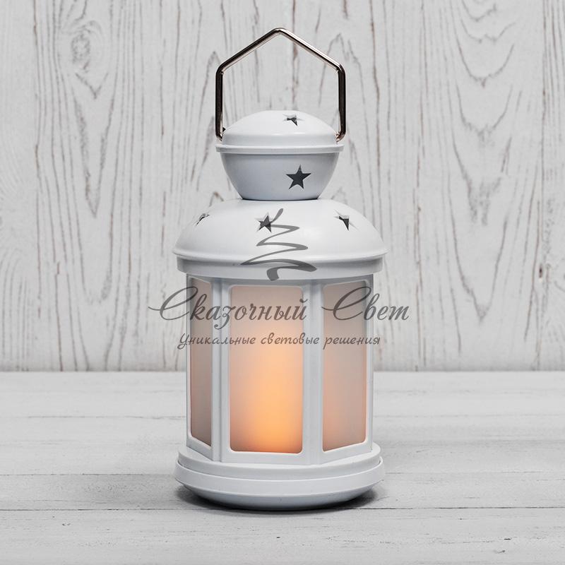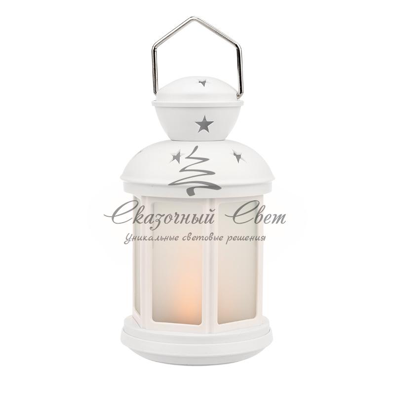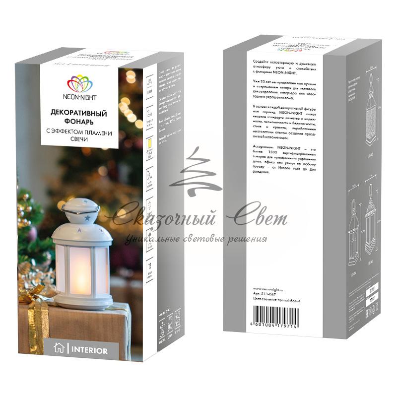 Декоративный фонарь 12х12х20,6 см, белый корпус, теплый белый цвет свечения с эффектом пламени свечи NEON-NIGHT купить в интернет-магазине Сказочный свет