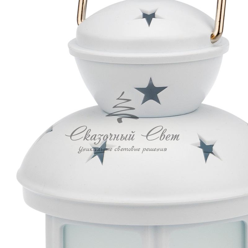 Декоративный фонарь с эффектом пламени свечи отличается стильным оформлением и необычным дизайном: свечка помещена в классический корпус белого цвета. Стекла с матовой поверхностью мягко рассеивают яркий поток, создавая комфортное для глаз свечение. Для подвешивания предусмотрено кольцо. За подсветку отвечает 21 белый диод, который экономно расходует заряд 2 батареек типа АА. Отсек для элементов питания находится в нижней части корпуса и надежно закрывается крышкой. Кнопка ON|OFF включает и выключает свечение.