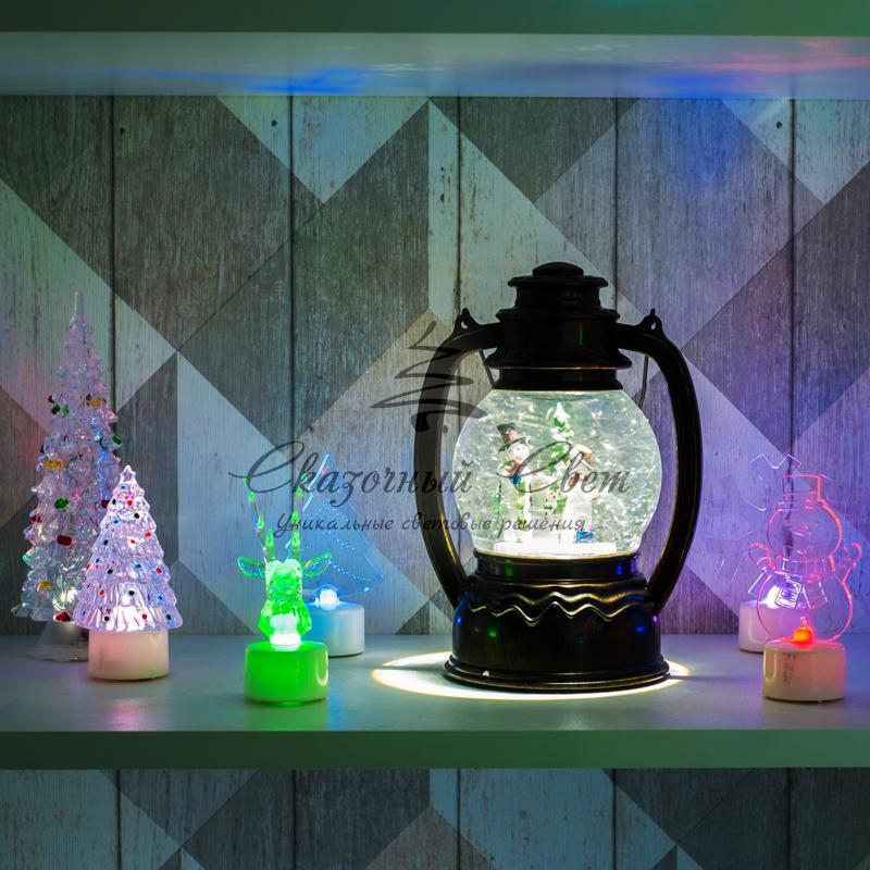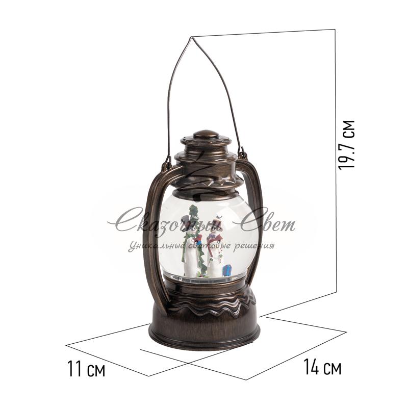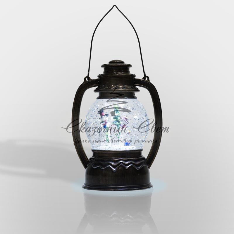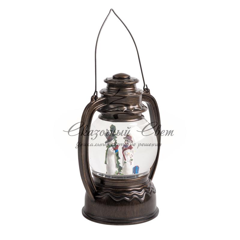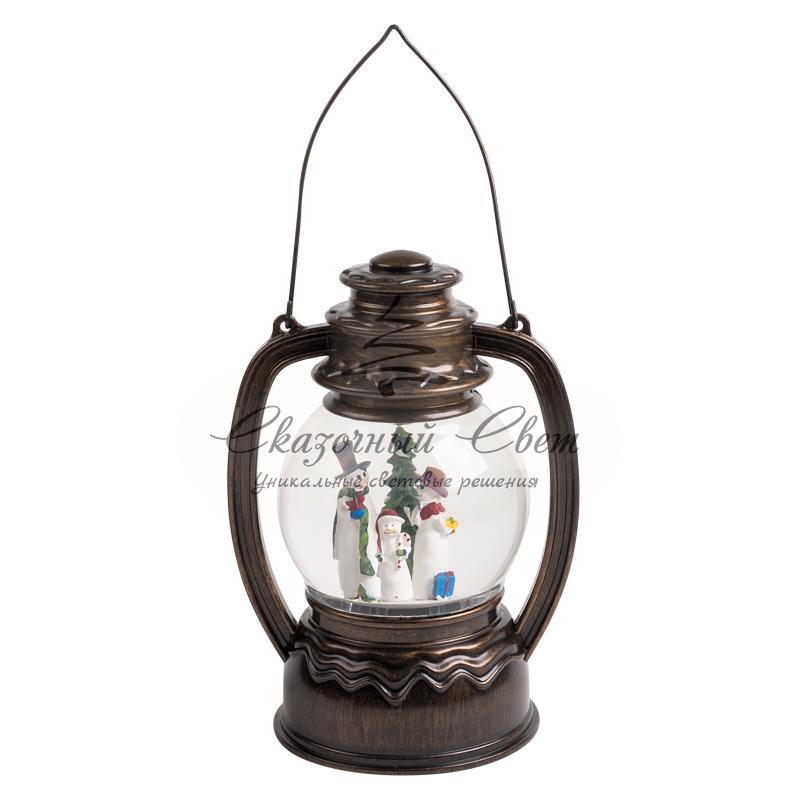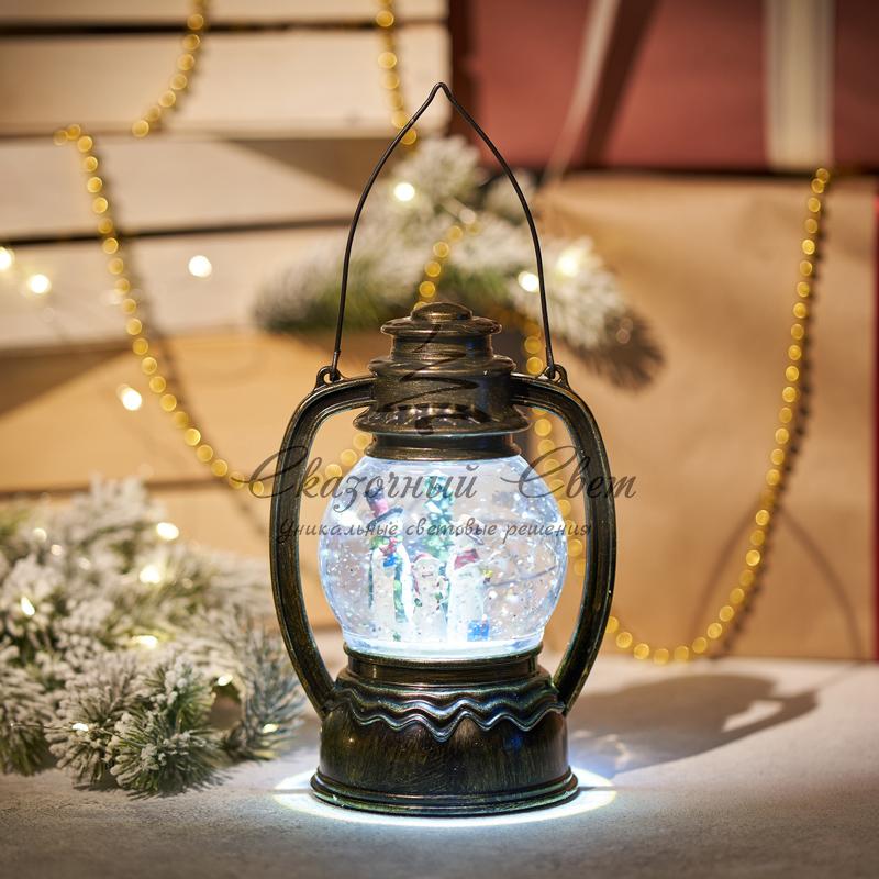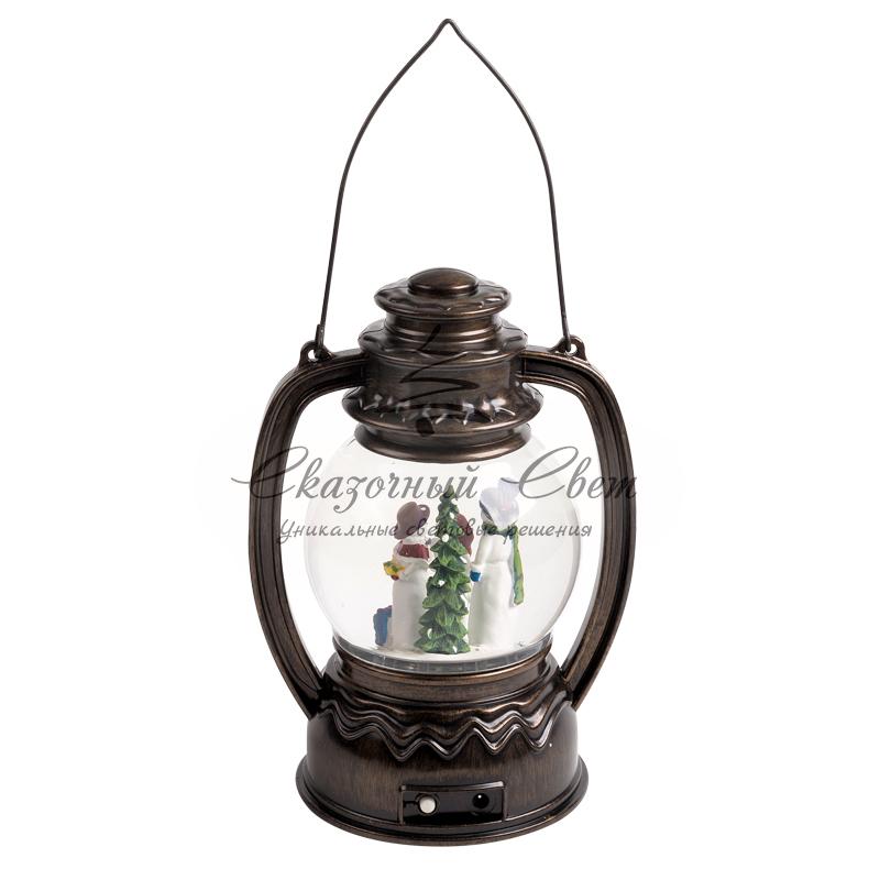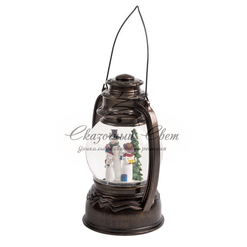 Декоративный фонарь с эффектом снегопада и подсветкой "Снеговики", Белый купить в интернет-магазине Сказочный свет
