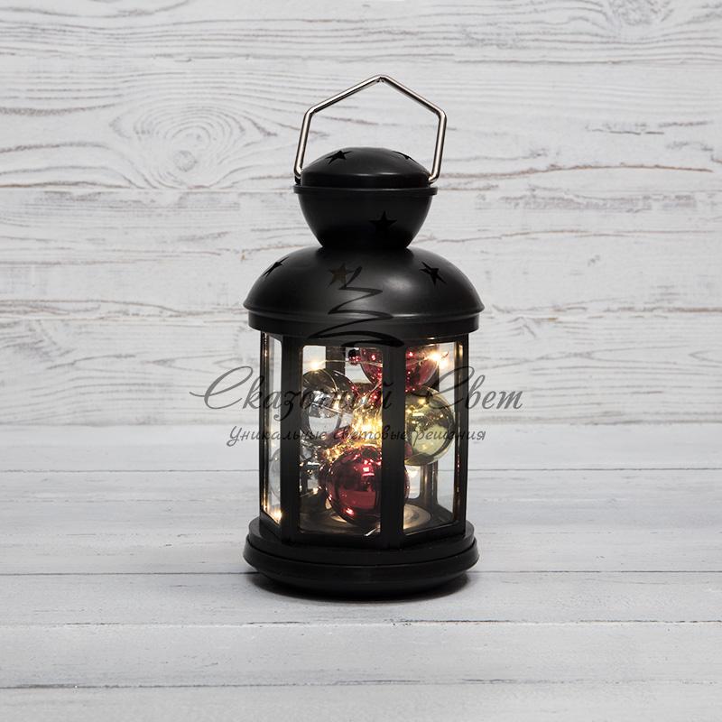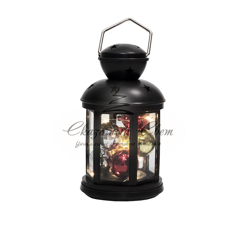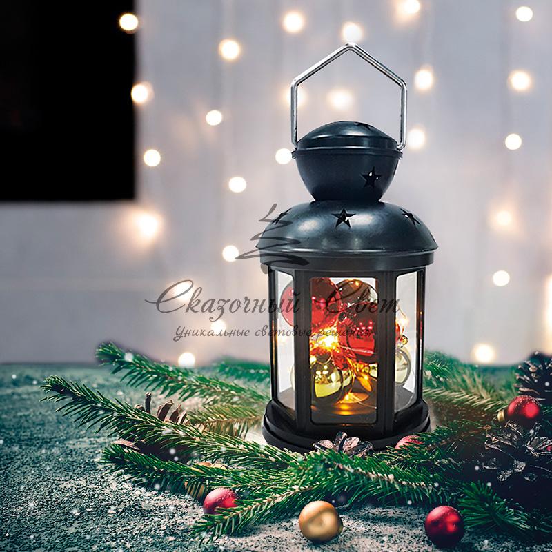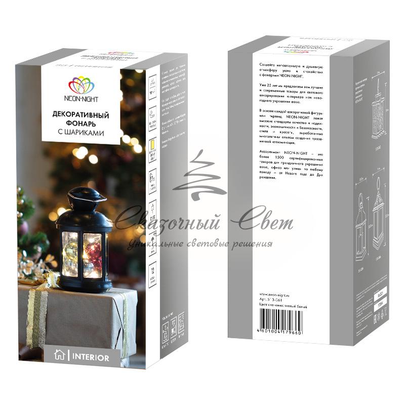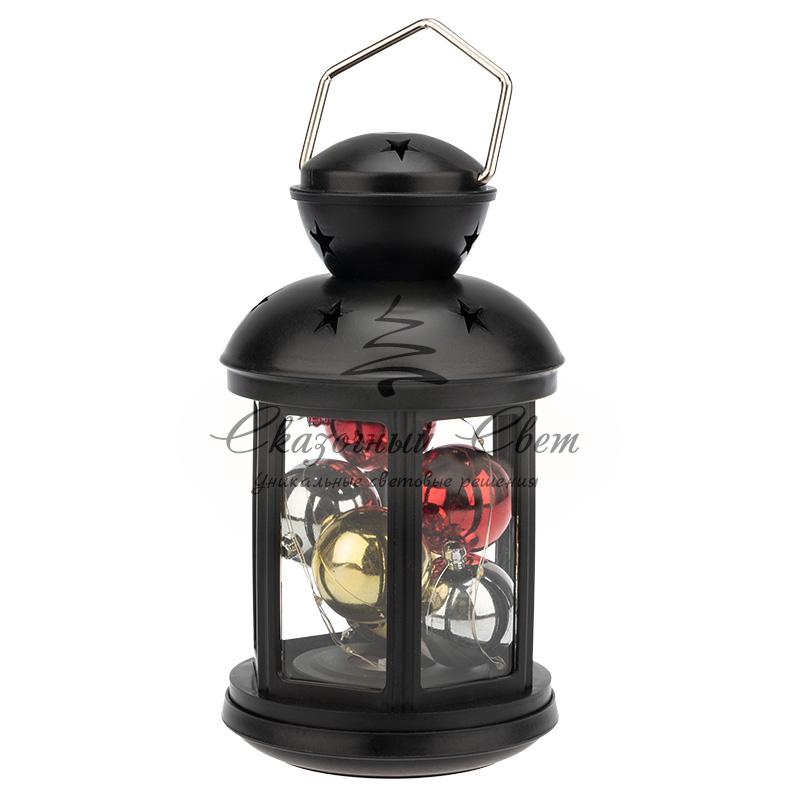 Декоративный фонарь с шариками 12х12х20,6 см, черный корпус, теплый белый цвет свечения NEON-NIGHT купить в интернет-магазине Сказочный свет