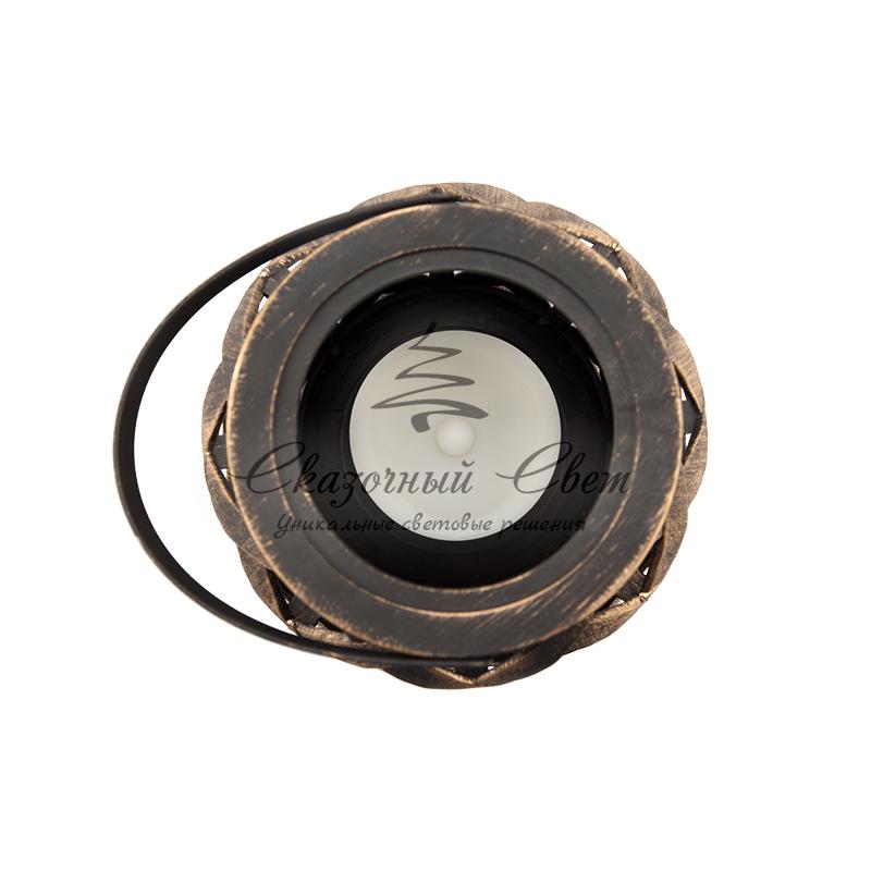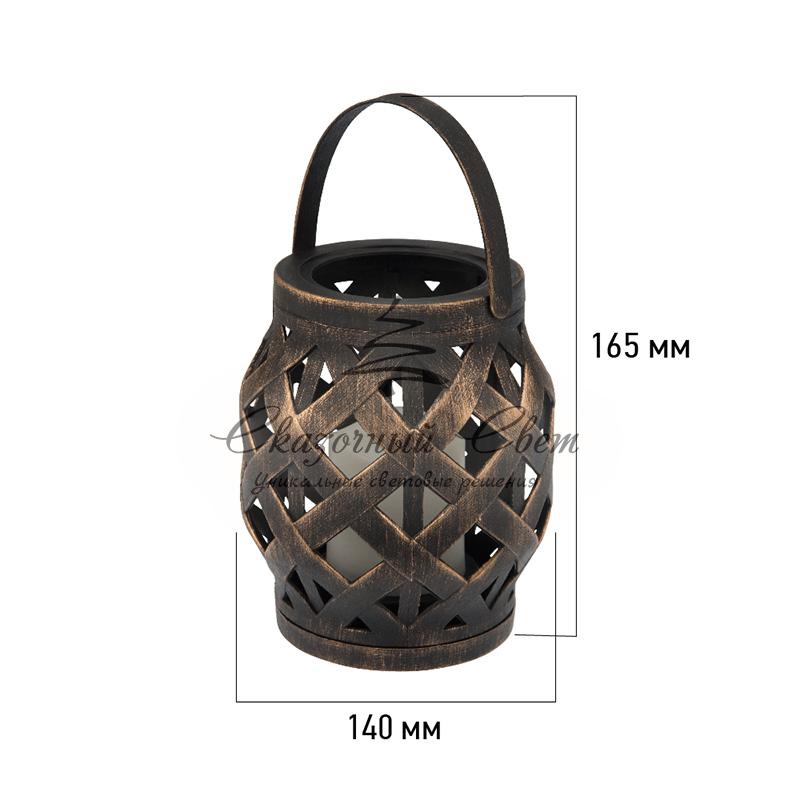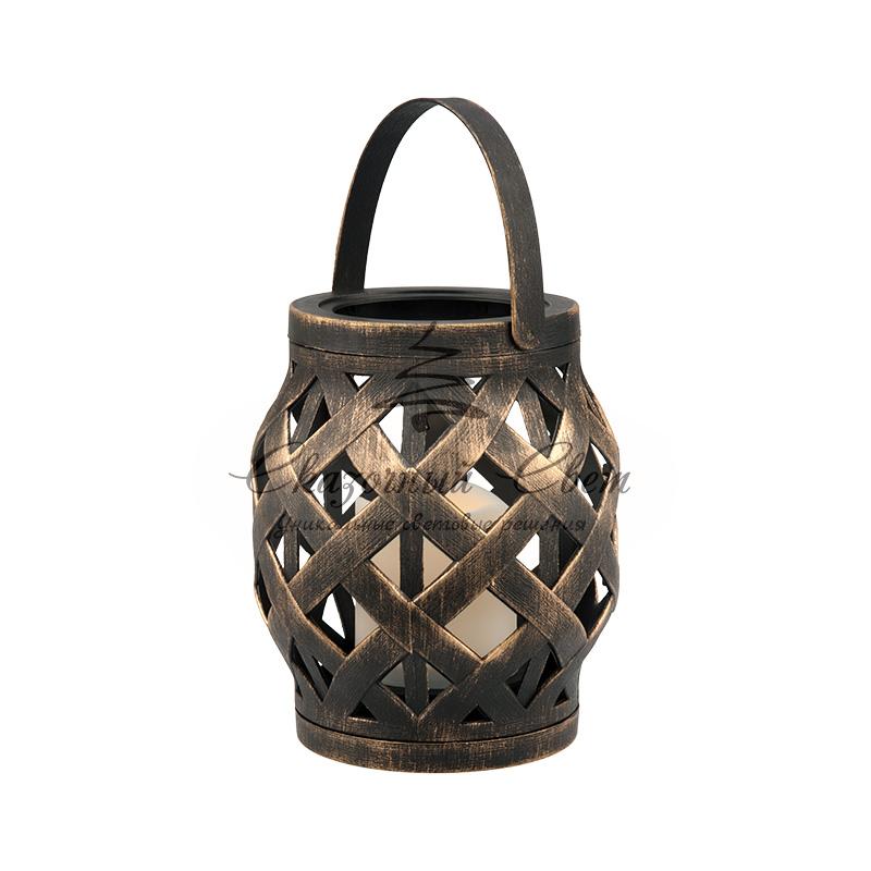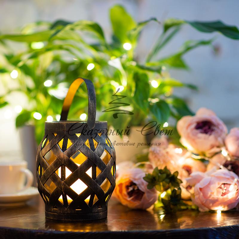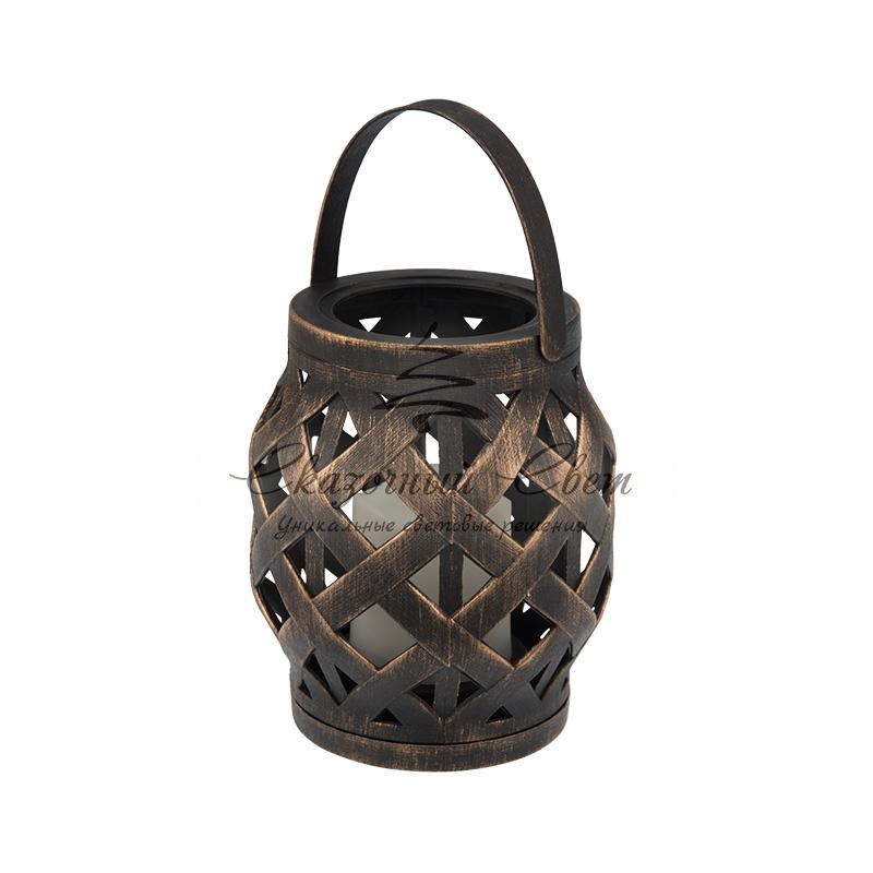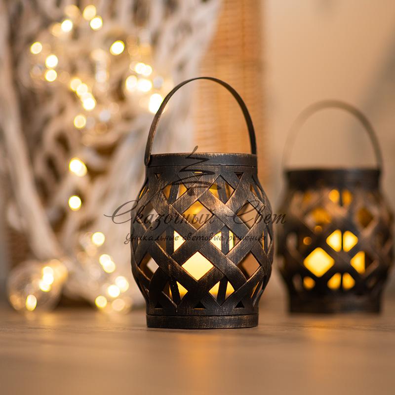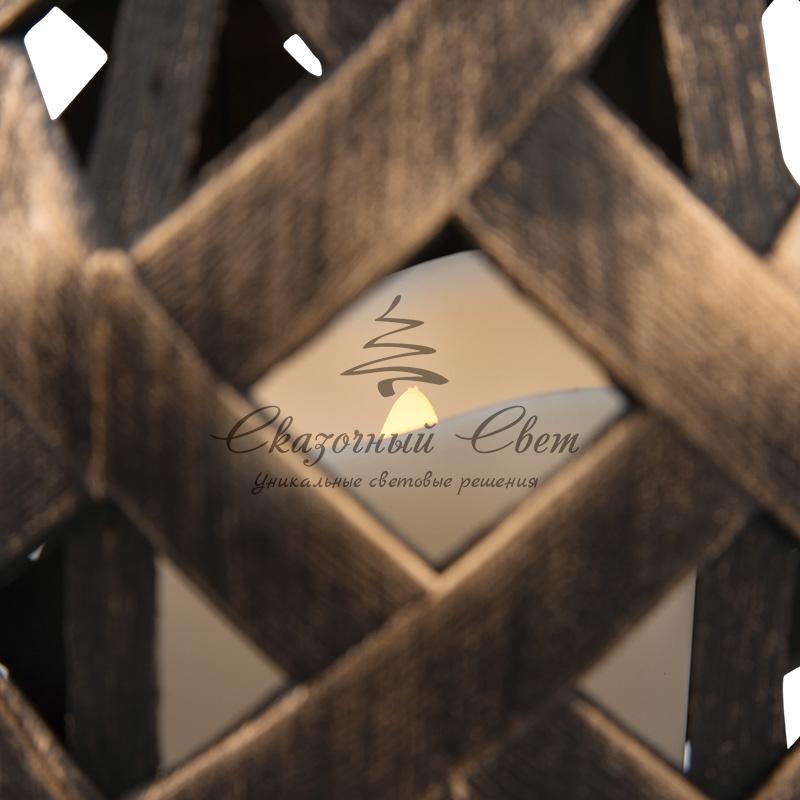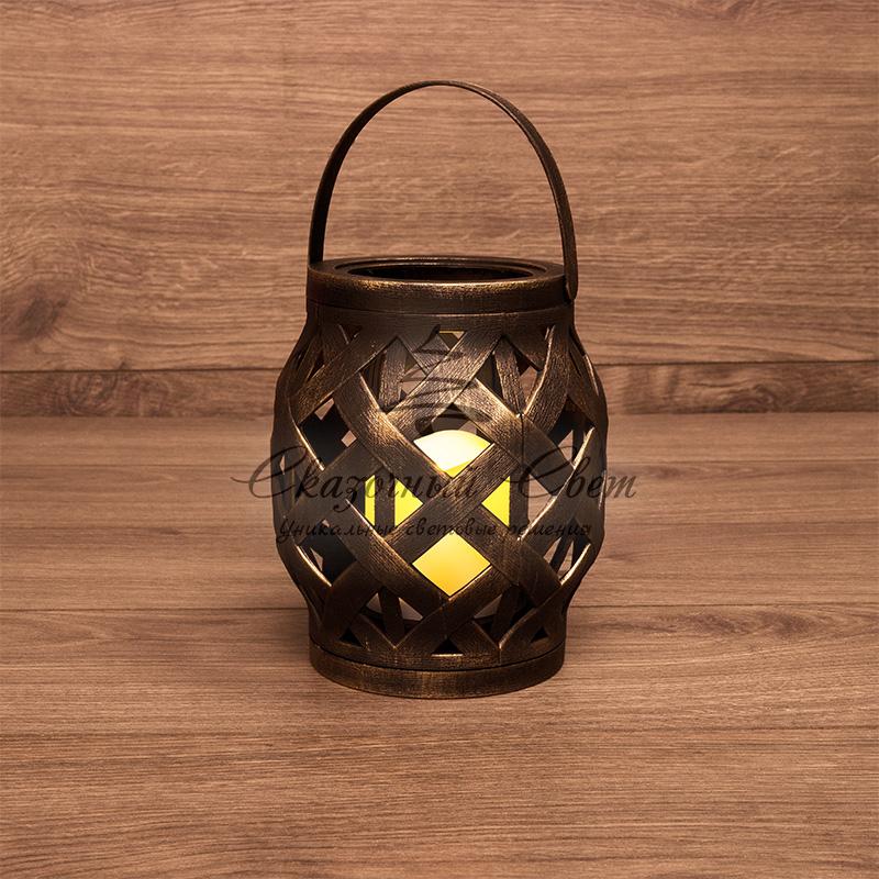 Декоративный фонарь со свечкой, плетеный корпус, бронза, размер 14х14х16,5 см, цвет теплый белый купить в интернет-магазине Сказочный свет