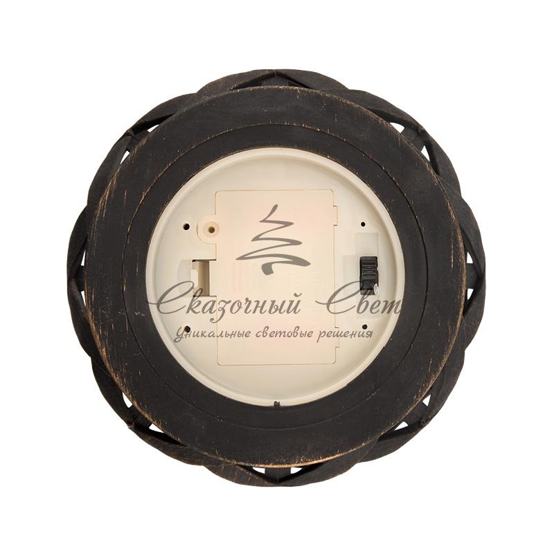 Декоративный фонарь со свечкой в плетеном корпусе бронзового цвета — стильное, оригинальное и безопасное светодиодное украшение для интерьера. В центре находится фигурка, выполненная в виде восковой свечи. Диод, излучающий белый свет теплого оттенка, имитирует настоящее пламя, не нагревается и экономно расходует энергию. Фонарь получает питание от 3 батареек типа ААА и не нуждается в розетке. На корпусе предусмотрен выключатель ON|OFF. Изделия на батарейках абсолютно безопасны в использовании.
