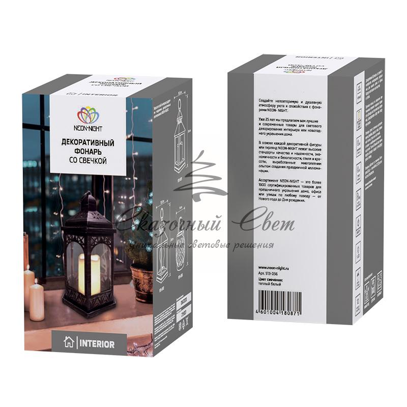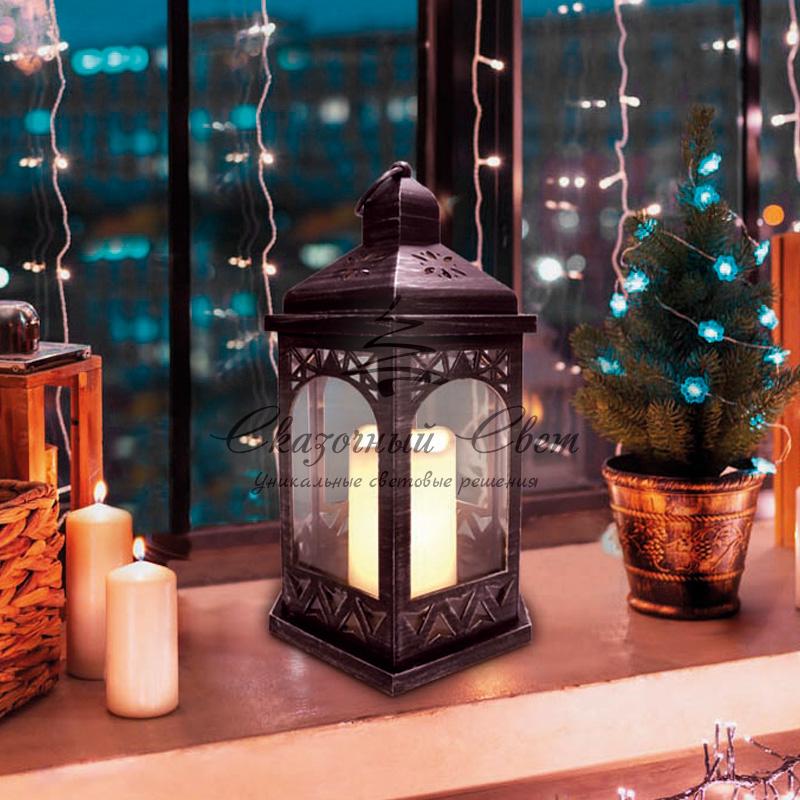 Декоративный фонарь со свечой 18x16.5x31 см, черный корпус, теплый белый цвет свечения NEON-NIGHT купить в интернет-магазине Сказочный свет