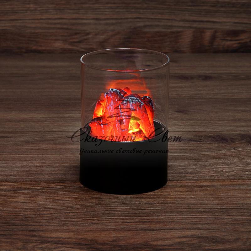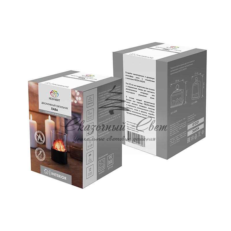 Декоративный светильник «Лава» имеет размеры 11 см в высоту и 7,5 см в диаметре. Корпус цилиндрической формы включает прозрачную колбу, внутри которой находится имитация горной породы, раскаленной до красного цвета. За подсветку отвечают 10 экономичных диодов. Эффект движущегося пламени привлекает внимание, заставляя любоваться зрелищем снова и снова. Светильник работает от 3 батареек типа АА, поэтому не требует размещения вблизи розетки.