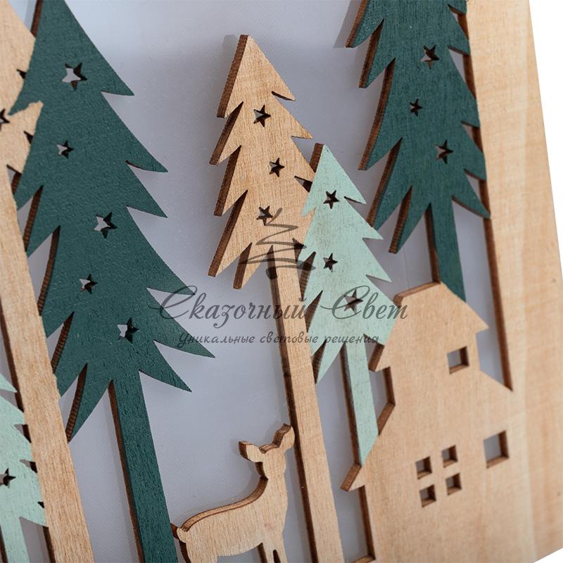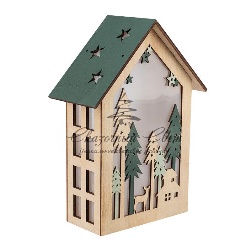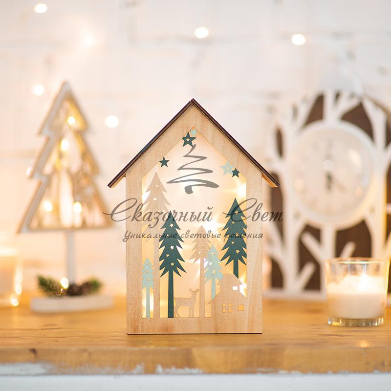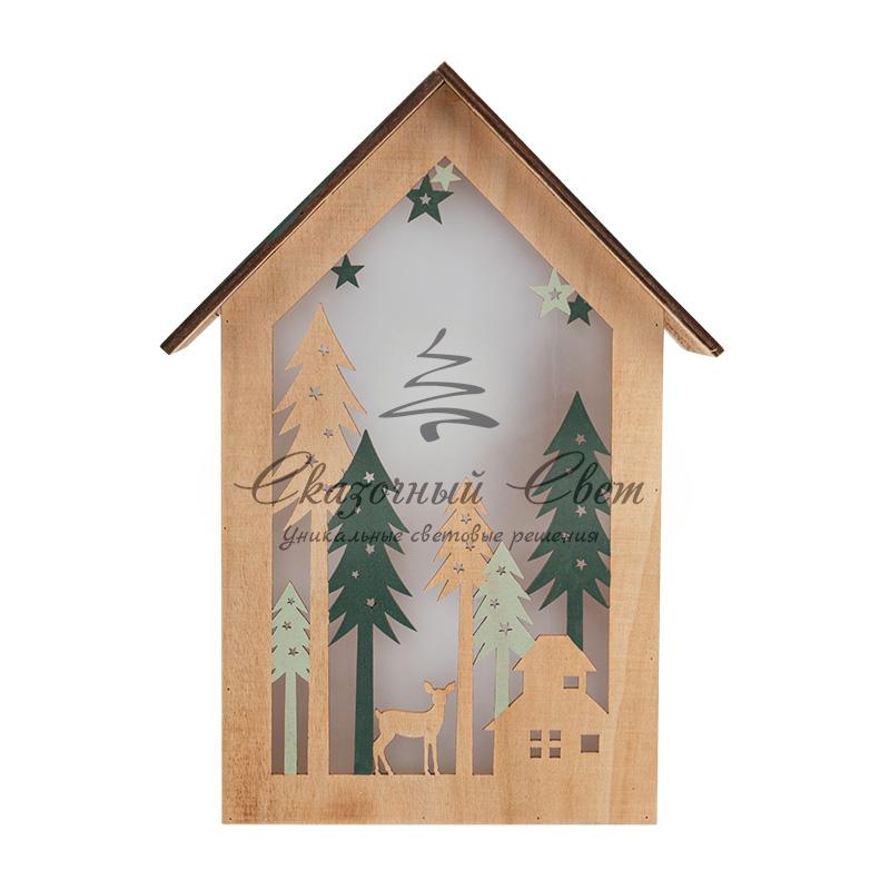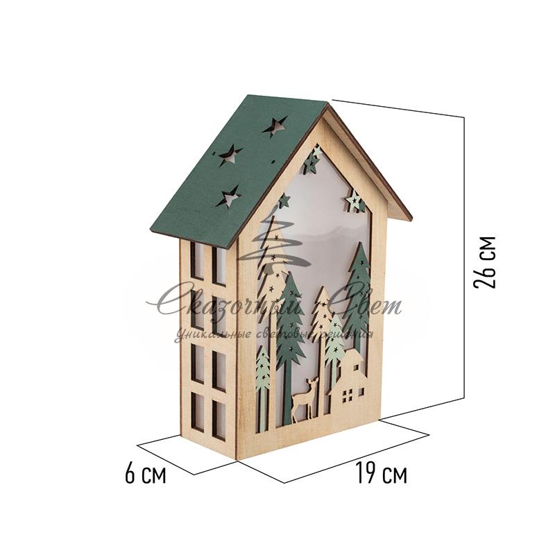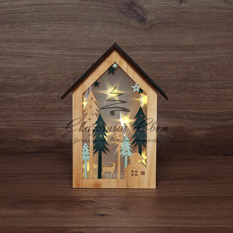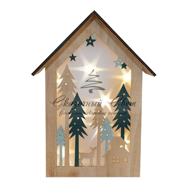 Деревянная фигурка с подсветкой «Домик в лесу» 19х6х26 см купить в интернет-магазине Сказочный свет