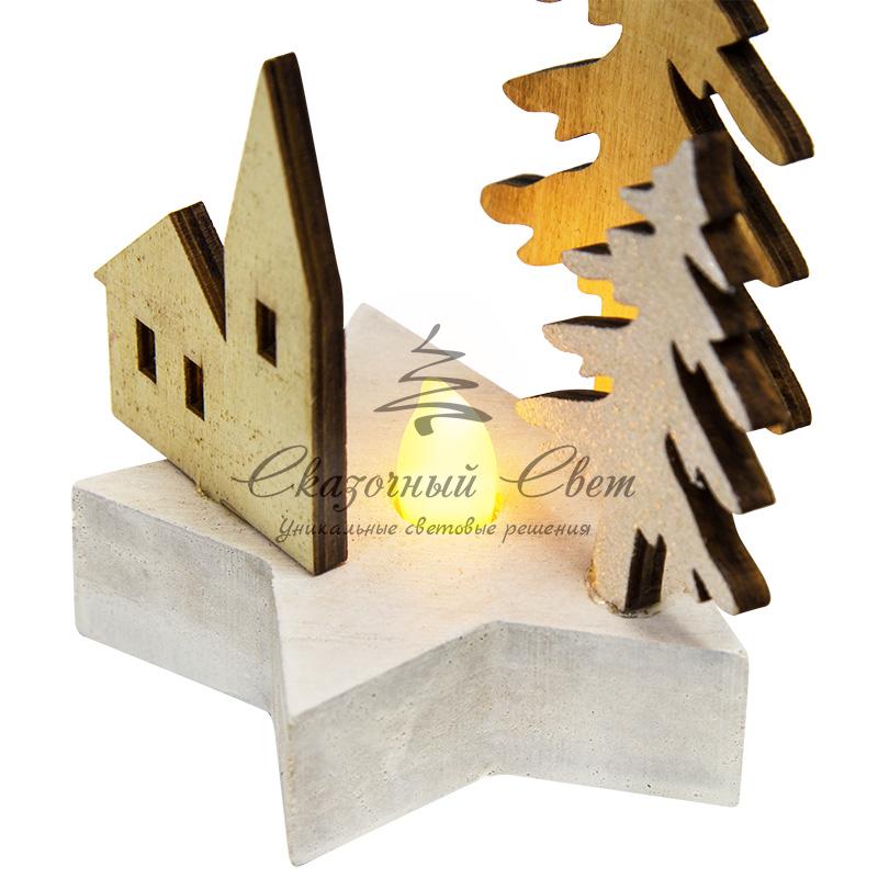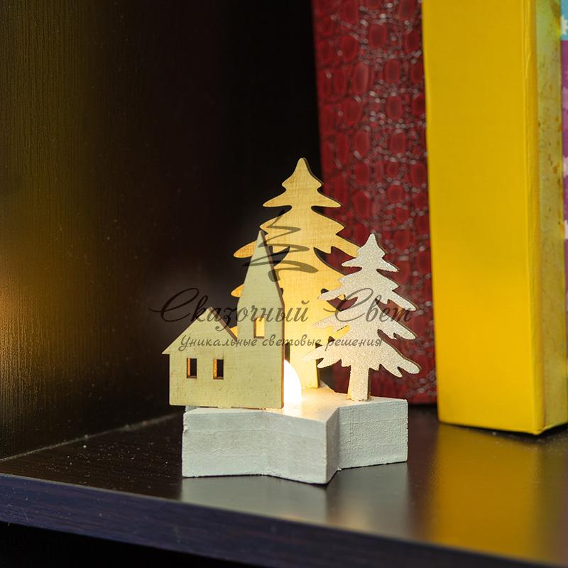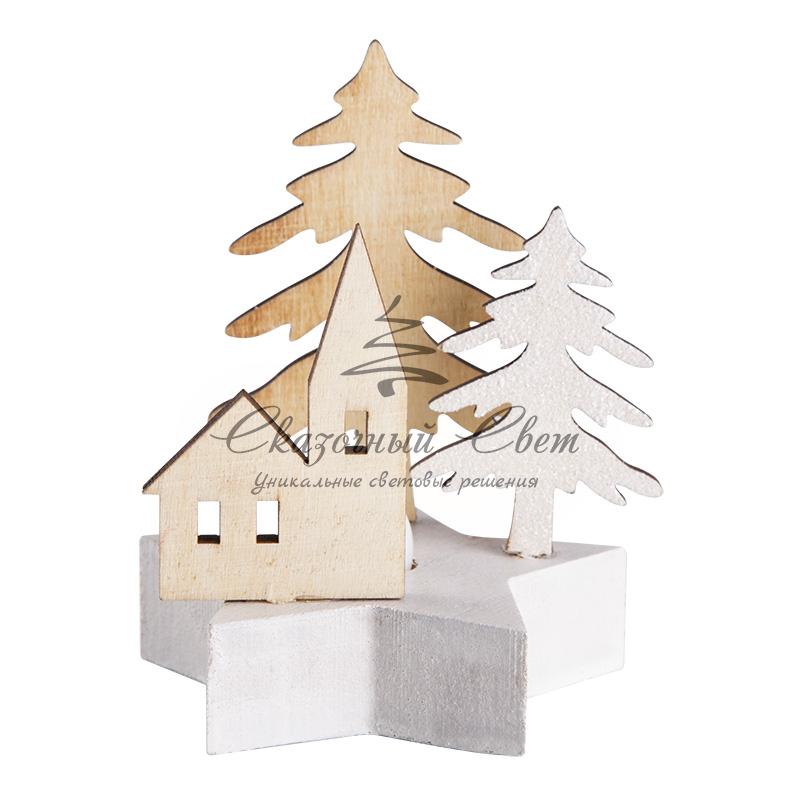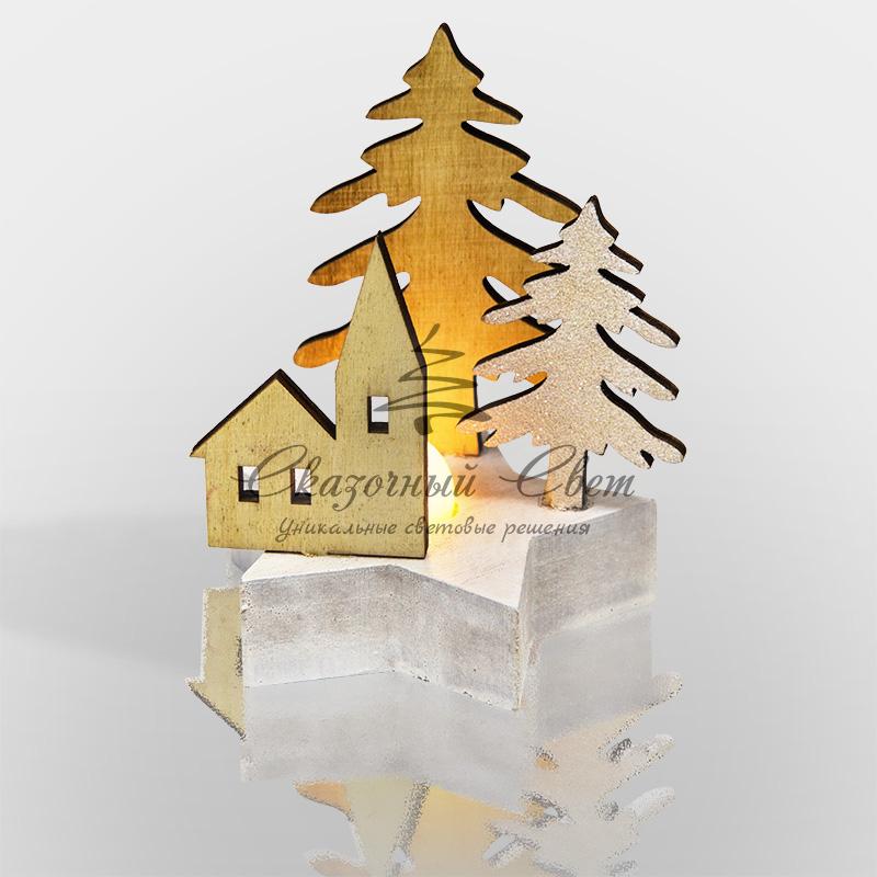 Деревянная фигурка с подсветкой "Домик в лесу" 9*8*10 см купить в интернет-магазине Сказочный свет