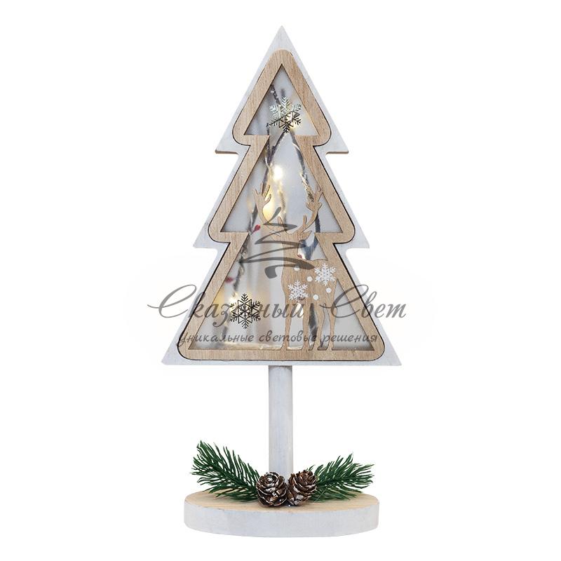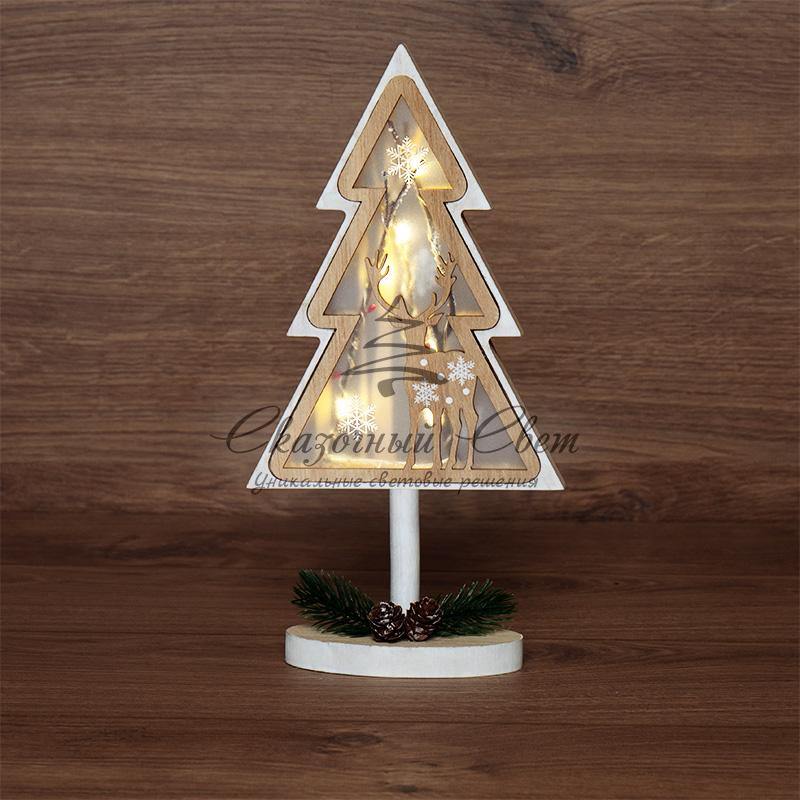 Деревянная фигурка с подсветкой «Елка на подставке» 14,5х5х30 см купить в интернет-магазине Сказочный свет