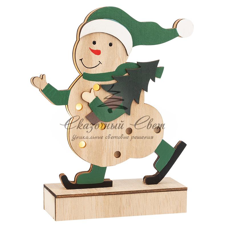 Деревянная фигурка с подсветкой «Снеговик» 18 см NEON-NIGHT купить в интернет-магазине Сказочный свет