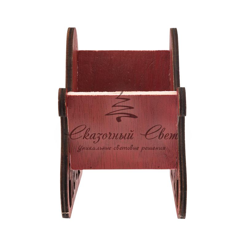 Деревянная фигурка «Сани» 11,5×7,5×9,5 см выполнена в красном цвете, символизирующем Новый год и Рождество. Резной декор в виде зимних саней украшен рисунками снежинок, оленя и причудливым орнаментом в стиле «этно». Изделие произведено из натуральной древесины с характерной фактурой. В красителях нет токсичных веществ, поэтому фигурку можно давать детям. Интерьерный декор подходит для использования в помещениях с умеренной влажностью.