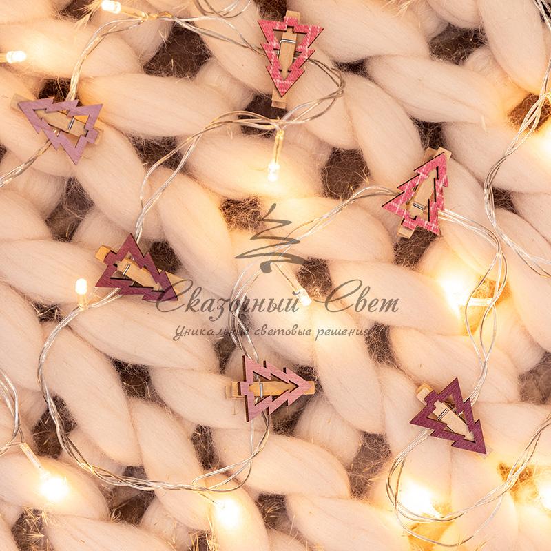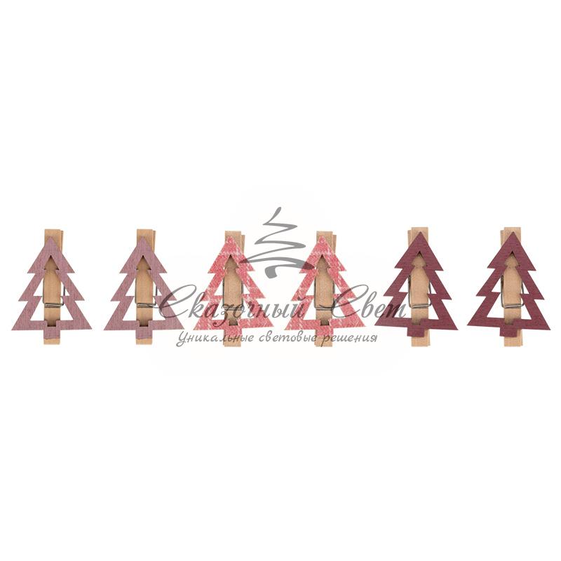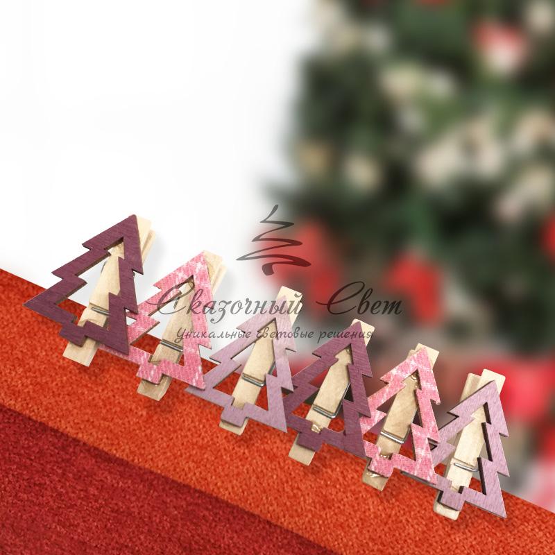 Деревянные прищепки «Елочки» 14.5x4.5x1.6 cм, 6 шт. розовые NEON-NIGHT купить в интернет-магазине Сказочный свет