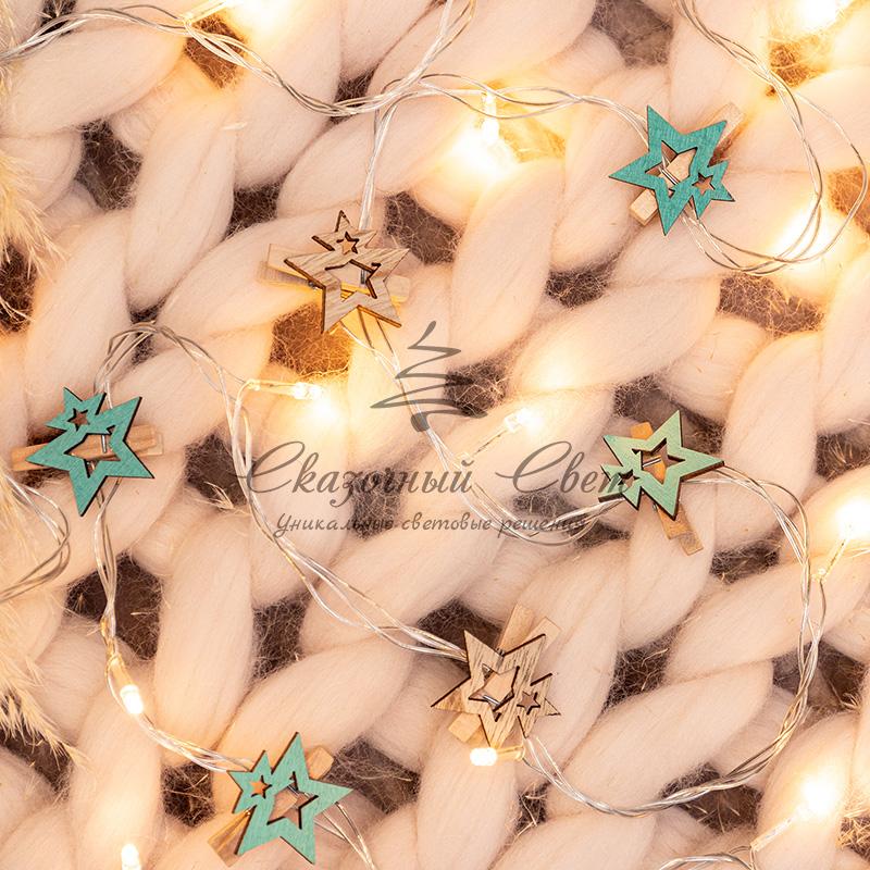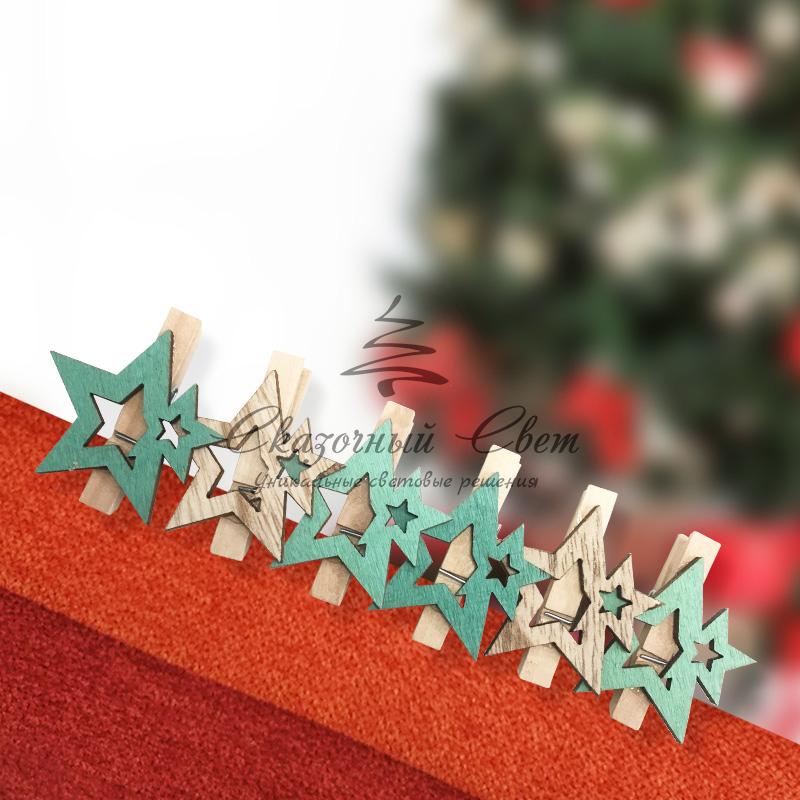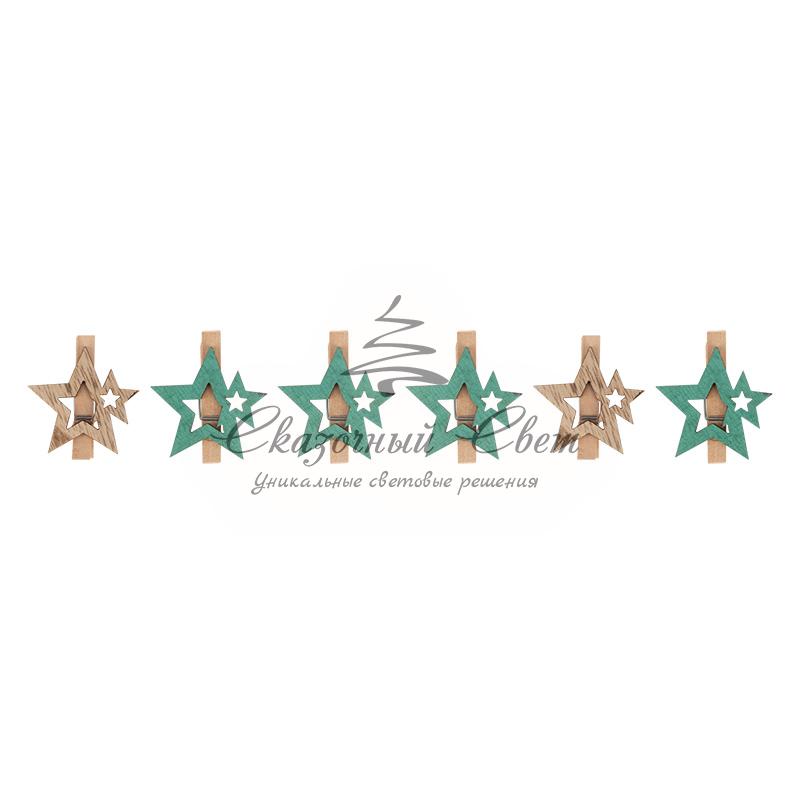 Деревянные прищепки «Звездочки» 16x4.5x1.3 cм, бирюзовые 6 шт. NEON-NIGHT купить в интернет-магазине Сказочный свет