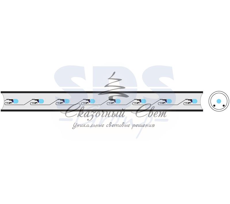 Дюралайт-гибкий световой шнур выполненный из ПВХ трубки с токопроводящими жилами и светодиодами внутри. Используется для декоративной и архитектурной подсветки объектов. Шнур с 2-мя проводами внутри называется фиксинг, такой дюралайт используется в режиме постоянного свечения. Дюралайт с 3-мя и более жилами питания называется чейзинг, светодиоды в чейзинге подключены поочередно к разным жилам, при использовании контроллера это позволяет создавать эффект «бегущей волны» из поочередно загорающихся светодиодов(режим свечения с динамикой). Дюралайт поставляется в бухтах длинами до 100м, в зависимости от модификации дюралайта модуль резки может составлять от 1 до 6 метров, следуя несложной инструкции потребитель легко может отрезать и подключить отрезок дюралайта нужной ему длины. Каждая бухта уже укомплектована 1 шнуром для подключения, максимальная подключаемая длина 100м. дополнительные шнуры можно приобрести отдельно. Температурный диапазон использования от -40 до +50 С, монтаж при температуре выше 0 градусов. Дополнительно предлагаются контроллеры для дюралайта фиксинг и чейзинг мощностью от 24 до 340 Вт, что позволяет подключить в одну цепь до 140 метров. При подключении дюралайта к соединительному разъему (муфте) необходимо заизолировать свободное воздушное пространство соединительного разъема (муфты) морозостойким силиконовым герметиком, предотвращающим попадание влаги. Сверху данного соединения необходимо использовать термоусаживаемую трубку. Стандартный шнур питания позволяет подключить дюралайт к сети в режиме постоянного свечения.