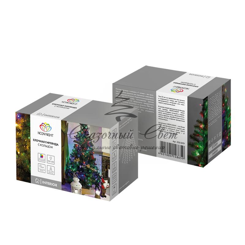 Елочная гирлянда с кольцом, 7 нитей по 1,5 метра, цвет диодов мультиколор, не соединяется купить в интернет-магазине Сказочный свет