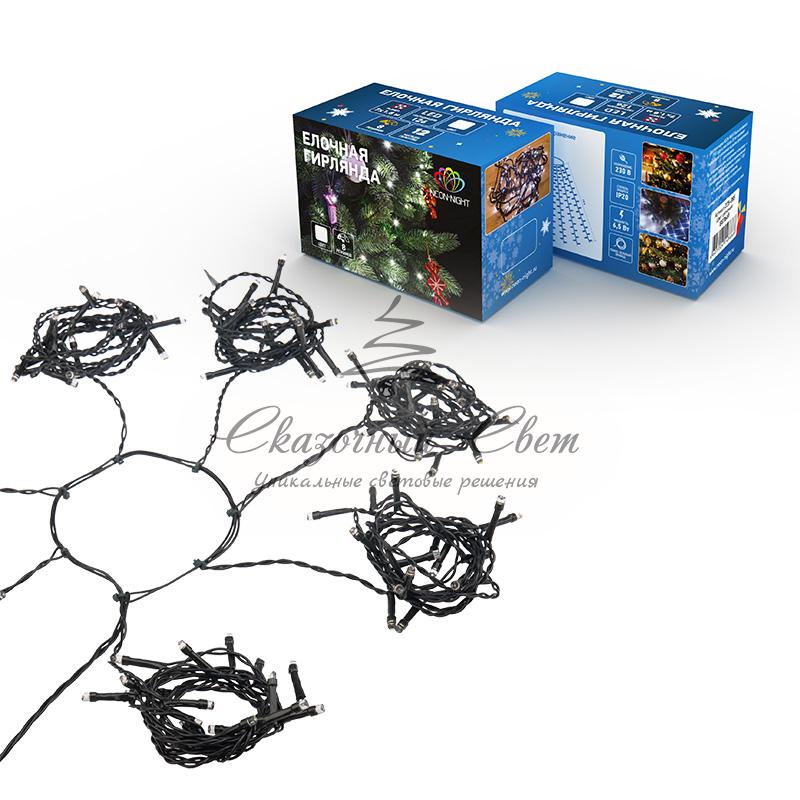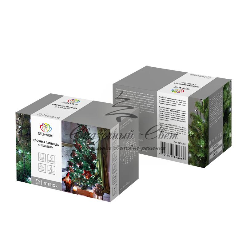 Елочная гирлянда с кольцом, 7 нитей по 1,8 метра, цвет диодов белый, не соединяется купить в интернет-магазине Сказочный свет
