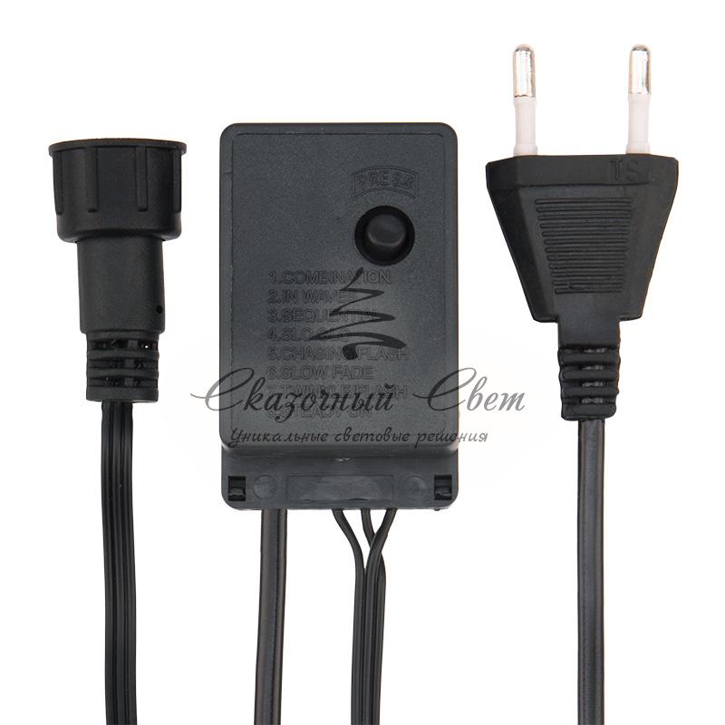 Елочная гирлянда с кольцом и 7 нитями по 1,8 м — это эффектное украшение новогодней ели, которое устанавливается буквально за минуту. Конструкция выполнена в виде кольца, к которому крепятся отдельные отрезки провода со светодиодами. Достаточно поместить кольцо на вершину елки, распределить нити между ветками или оставить их свободно свисать — оригинальный декор готов. 126 светодиодов излучают белый нейтральный свет, имитируя сверкающий иней, и меняют режимы при помощи контроллера. В устройстве управления предусмотрено 8 режимов свечения. Гибкий шнур защищен изоляционной оболочкой из темно-зеленого ПВХ, длина питающего шнура — 3 метра.