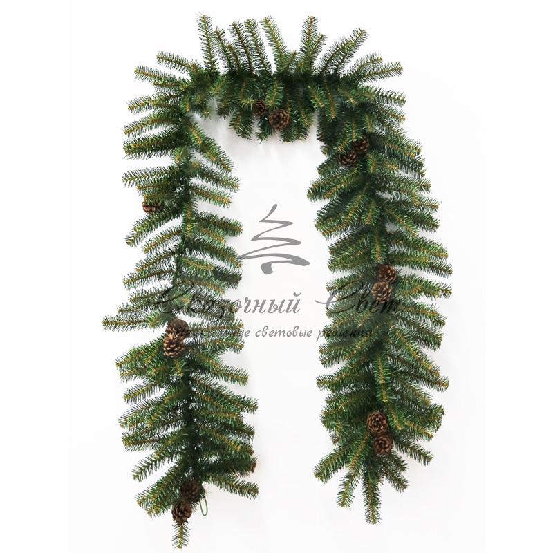 Еловый шлейф 2,7 м с шишками, объем 36 см купить в интернет-магазине Сказочный свет