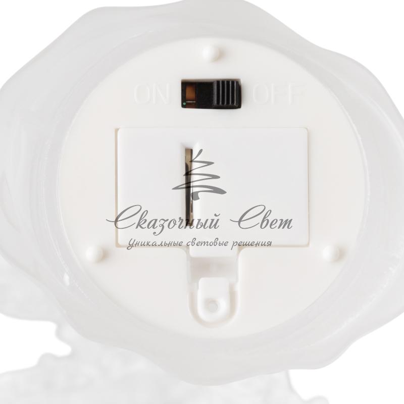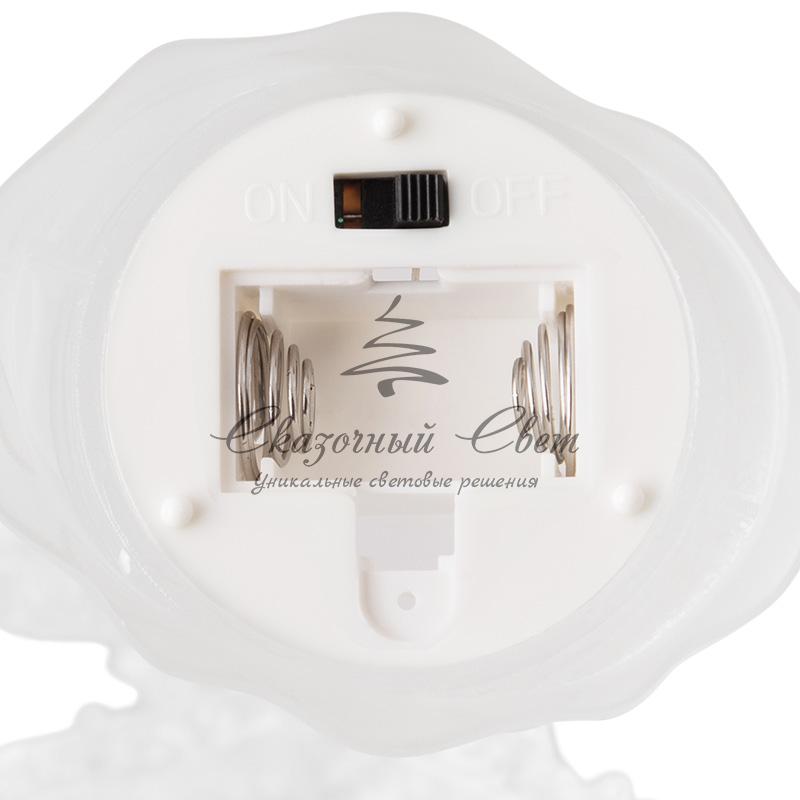 Фигура на подставке «Елочка» высотой 25 см выполнена из кристально прозрачного пластика, в нижней части находится батарейный модуль, рассчитанный на 3 элемента питания типа AG13. Один яркий светодиод RGB плавно меняет цвета в хаотичном порядке, эффектно подсвечивая дерево. Имитация заснеженных веток, проработанные детали в виде хрустальных сосулек, сверкающие разными оттенками в 256 вариациях оттенков, делают настольную фигуру оригинальным интерьерным декором, который непременно привлечет внимание окружающих.