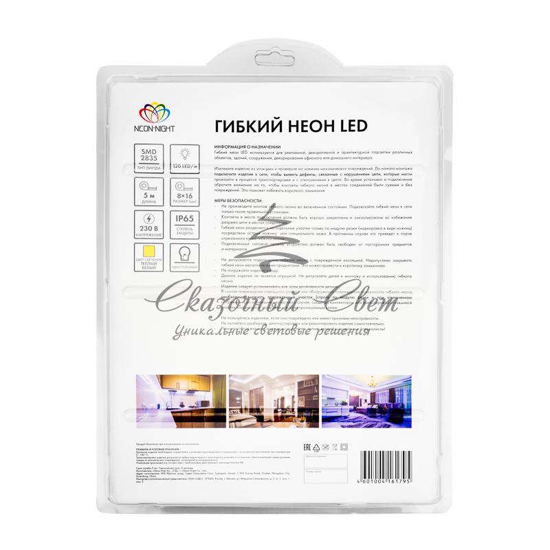 Гибкий неон LED SMD 8х16 мм, односторонний, теплый белый, 120 LED/м, 5 м купить в интернет-магазине Сказочный свет