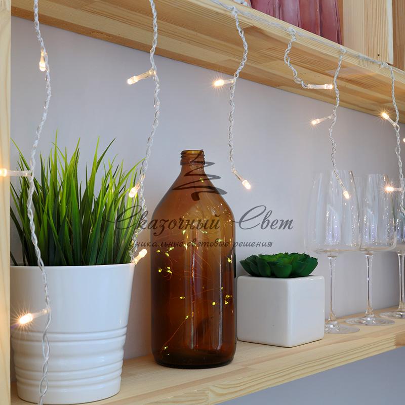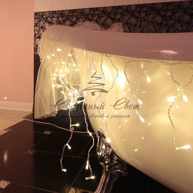 Гирлянда Айсикл (бахрома) светодиодная, 1,8 х 0,5 м, прозрачный провод, 230 В, диоды ТЕПЛЫЙ БЕЛЫЙ купить в интернет-магазине Сказочный свет