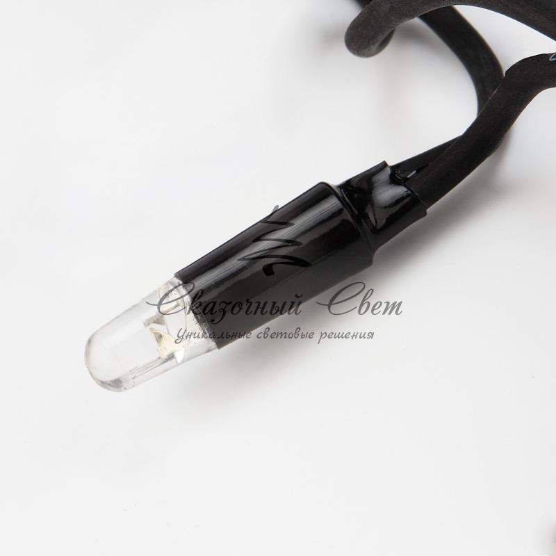 Гирлянда «Бахрома» («Айсикл») представляет собой гибкий горизонтальный шнур-шину, к которому через определенные промежутки крепятся вертикальные нити разной длины со светодиодами. Она имитирует сосульки и может послужить эффектным и оригинальным решением при декорировании карнизов домов, арок, фасадов зданий, витрин магазинов, а также стать элементом декора внутренних интерьеров помещений. Благодаря использованию в гирлянде светодиодов, ее отличительной особенностью является превосходная яркость и низкое энергопотребление по сравнению с лампами накаливания. При длине 3,2 метра гибкая направляющая имеет 24 вертикальные нити от 20 до 60 см. Данная гирлянда имеет теплый белый цвет свечения и предназначена для использования как внутри помещения, так и снаружи. Важной особенностью данного исполнения является каучуковый провод, благодаря которому гирлянду отличает высокая надежность в условиях российского климата, даже в самых холодных регионах страны.