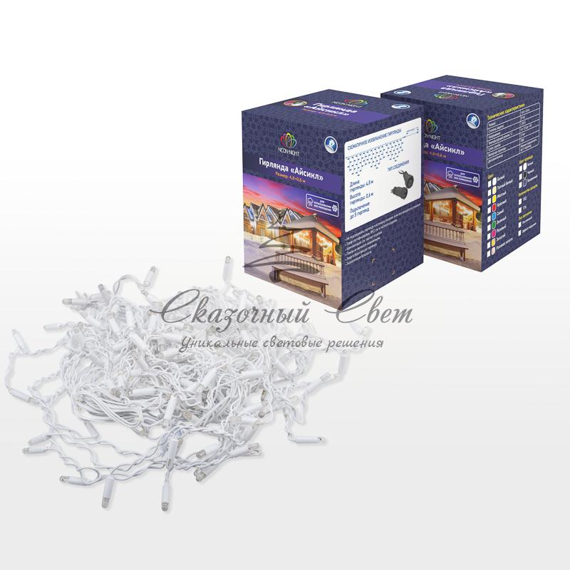 Гирлянда Айсикл (бахрома) светодиодный, 2,4 х 0,6 м, белый провод, 230 В, диоды ТЕПЛЫЙ БЕЛЫЙ, 88 LED NEON-NIGHT купить в интернет-магазине Сказочный свет