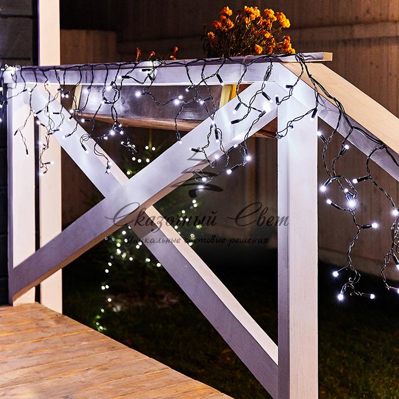 Гирлянда Айсикл (бахрома) светодиодный, 2,4 х 0,6 м, черный провод, 230 В, диоды белые, 88 LED NEON-NIGHT купить в интернет-магазине Сказочный свет
