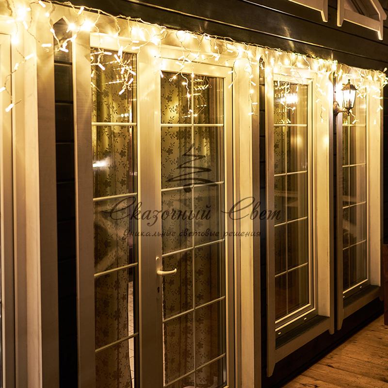 Гирлянда Айсикл (бахрома) светодиодный, 4,8 х 0,6 м, белый провод, 230 В, диоды ТЕПЛЫЙ БЕЛЫЙ, 152 LED купить в интернет-магазине Сказочный свет