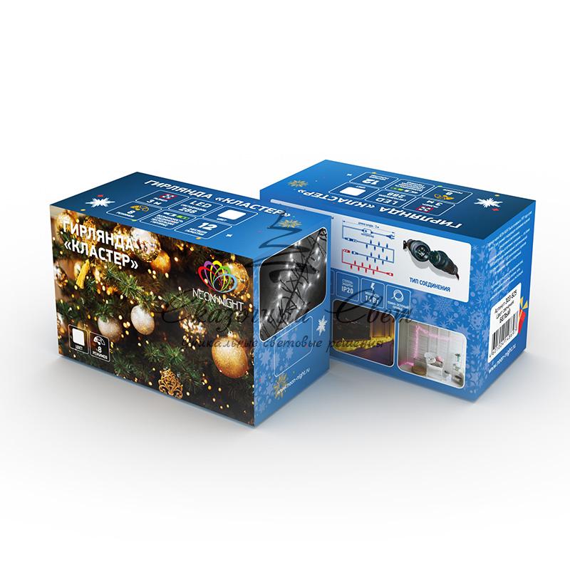 Гирлянда «Кластер» длиной 3 метра представляет собой скопление сверкающих огней, равномерно распределенных на основном кабеле. Шнур защищен от повреждений изоляцией из темно-зеленого ПВХ и отлично маскируется в кроне новогодней ели. 288 диодов излучают белый свет, создавая эффект объемной подсветки, похожей на мерцание инея в хвойной кроне. Гирлянда IP20 предназначена для использования дома, в офисе, а также в других помещениях с умеренной влажностью. Можно последовательно соединить до 20 гирлянд. Контроллер с 8 режимами делает управление светодинамическими эффектами простым и удобным. Трехметровый питающий шнур позволяет разместить гирлянду в любом удобном месте.