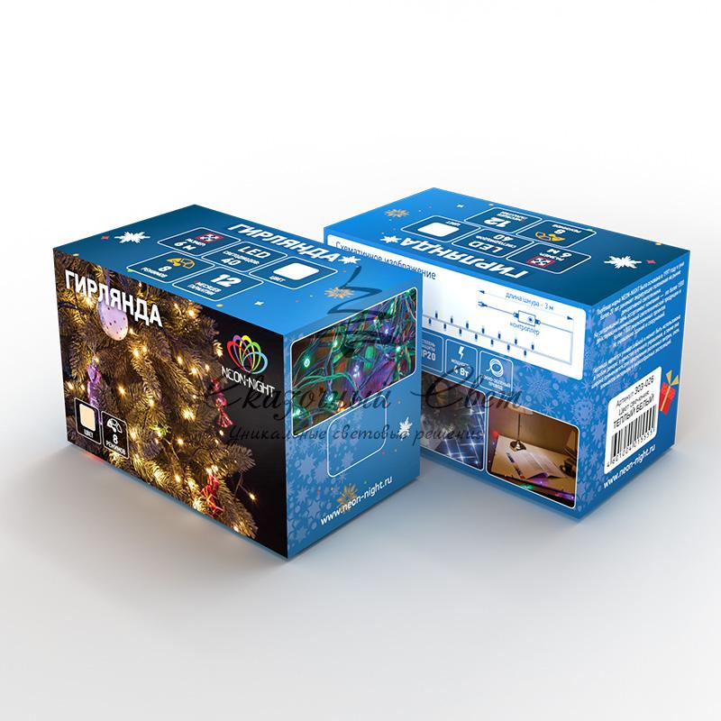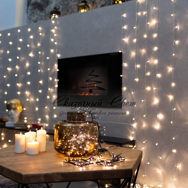 Гирлянда «Кластер» длиной 3 метра — это светодиодное интерьерное украшение, которое прекрасно подходит для оформления новогодних елей: провод в оболочке из темно-зеленого ПВХ практически незаметен на фоне пушистой кроны. 288 диодов излучают теплый белый свет и создают объемный эффект — россыпь сверкающих золотистых огней. За светодинамику отвечает контроллер с 8 режимами: 7 динамическими и 1 статичным. Можно соединить до 20 гирлянд при помощи удобных разъемов на концах изделий. Степень защиты IP20 предполагает использование в отапливаемых помещениях с низким уровнем влажности.
