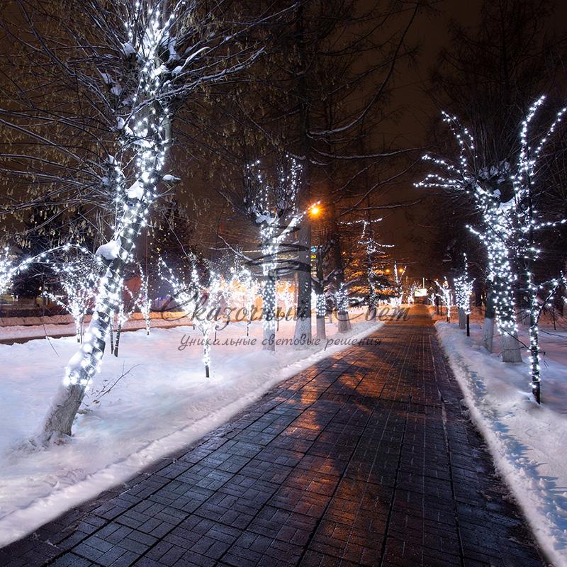 Светодиодная гирлянда «Клип-лайт» представляет собой провод, на котором последовательно расположены светодиоды. Также гирлянды могут быть изготовлены из малогабаритных лампочек накаливания. Источники света могут располагаться на расстоянии 7,5, 15, 30 см друг от друга. Данная гирлянда «Клип-лайт» разработана для оформления деревьев и широко применяется в ландшафтном оформлении парков, аллей, садов и др., поэтому она хорошо переносит даже достаточно серьезные перепады температур. В качестве преимуществ гирлянды можно отметить следующие: более толстый и крепкий провод, невысокое напряжение, хорошая влагозащищенность, высокое разнообразие цветовых решений. Также гирлянда не выделяет тепла, поэтому совершенно безопасна не только для деревьев и кустарников, но и для людей! Данная гирлянда поставляется в бухтах по 100 м на прозрачном ПВХ, представлена в белом цвете свечения светодиодов.