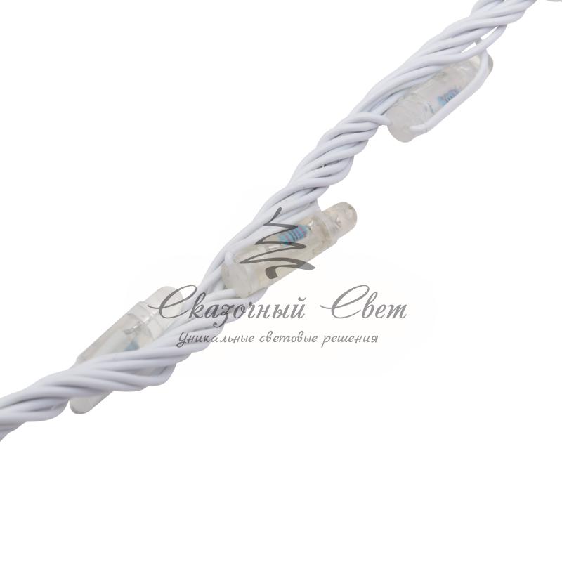 Гирлянда «LED — Умный дождь» состоит из отдельных модулей, имеющих ширину 3 м. Каждый модуль включает в себя 12 нитей. Трехметровые модули соединяются между собой с помощью совместимых разъёмов. К самому первому модулю подключается трансформатор и функциональный контроллер, управляющий каждым светодиодом на гирлянде. Трансформатор подсоединяется к первому, четвёртому, и далее к каждому третьему модулю гирлянды. Перед подключением трансформатора, на контроллере необходимо задать количество подключенных к нему модулей гирлянды. В памяти контроллера уже сохранены 24 наиболее оригинальные программы, желаемую из которых Вы сможете выбрать нажатием одной кнопки. Для создания более сложных световых эффектов предлагается профессиональный контроллер с возможностью компьютерного программирования. «Умный дождь» поможет украсить своими бегающими огоньками любой объект, фасад здания, крыльцо , фонтан или рождественскую ель. Также с его помощью Вы можете создавать красивые декоративные ширмы! Сегодня в гирляндах источником света служат светодиоды, которые пришли на смену применявшимся ранее лампам накаливания. С полупроводниковыми источниками гирлянда стала более надежной, потребляет меньше энергии, обрела более насыщенное сияние. Данная гирлянда имеет белый цвет свечения светодиодов.