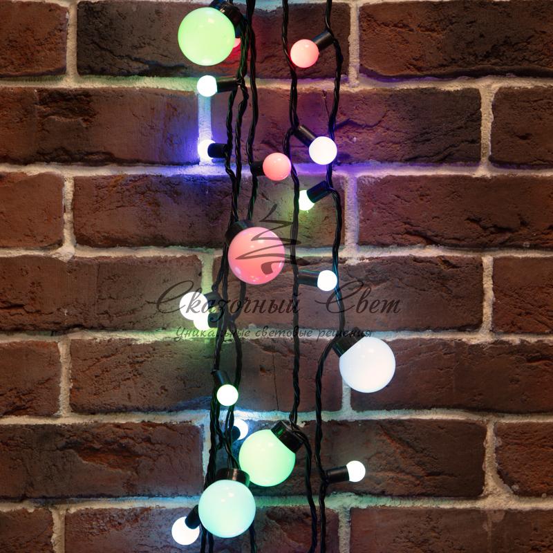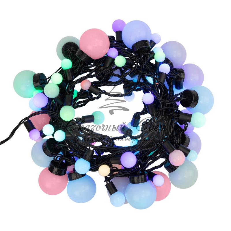 Гирлянда "Мультишарики" 17,5мм, Ø23мм, Ø17,5мм, Ø45мм 10м черный ПВХ, 80 диодов, цвет RGB купить в интернет-магазине Сказочный свет