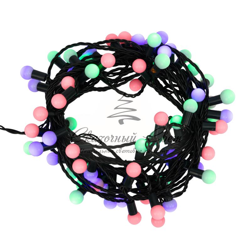 Гирлянда "Мультишарики" Ø17,5 мм, 10 м, темно-зеленый ПВХ, 80 диодов, цвет Мультиколор купить в интернет-магазине Сказочный свет