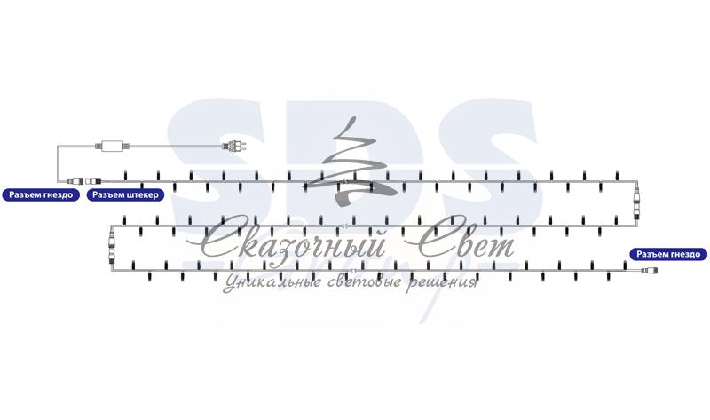Светодиодная гирлянду «Дюраплей Led» изготавливают в виде эластичного кабеля со встроенными светодиодами с шагом ламп 10 см. Предусмотрена возможность последовательного подключения. гирлянд. Максимальная длина гирлянды может достигать 200 м! Максимальное количество гирлянд подключаемых в одну цепь — 10. Эта ударопрочная и влагостойкая конструкция идеально подходит для применения на наружных объектах. Высокая степень современной влагозащиты дает возможность для использования гирлянды в сложных климатических условиях. Она нашла широкое применение при подсветке фасадов зданий, новогодних елок, ограждений, мостов, деревьев, арок, магазинов. Великолепно подходит для красочного оформления витрин. Отличительными чертами «Дюраплей Led» стали повышенная яркость излучаемого света, низкое энергопотребление и непревзойденная надежность. В данном комплекте 4 модуля по 5 м с цветом свечения светодиодов мультиколор.