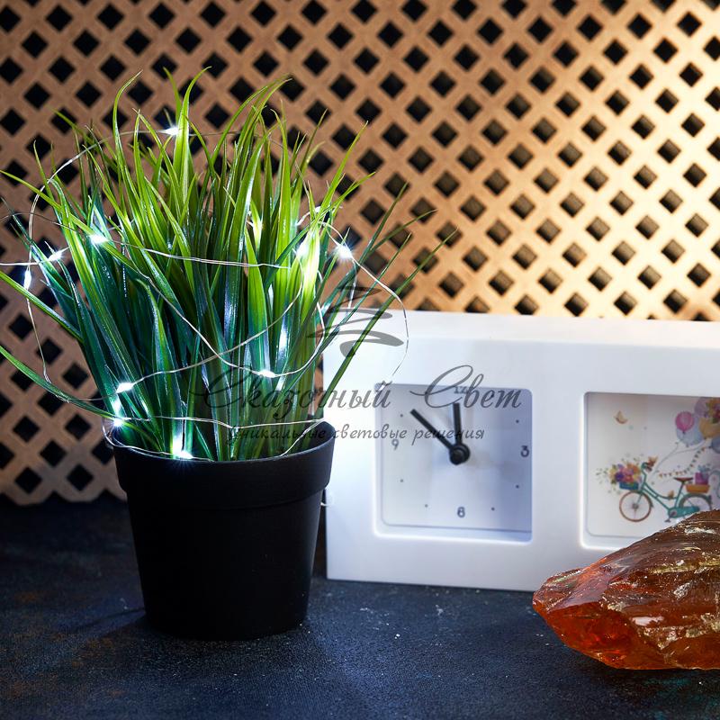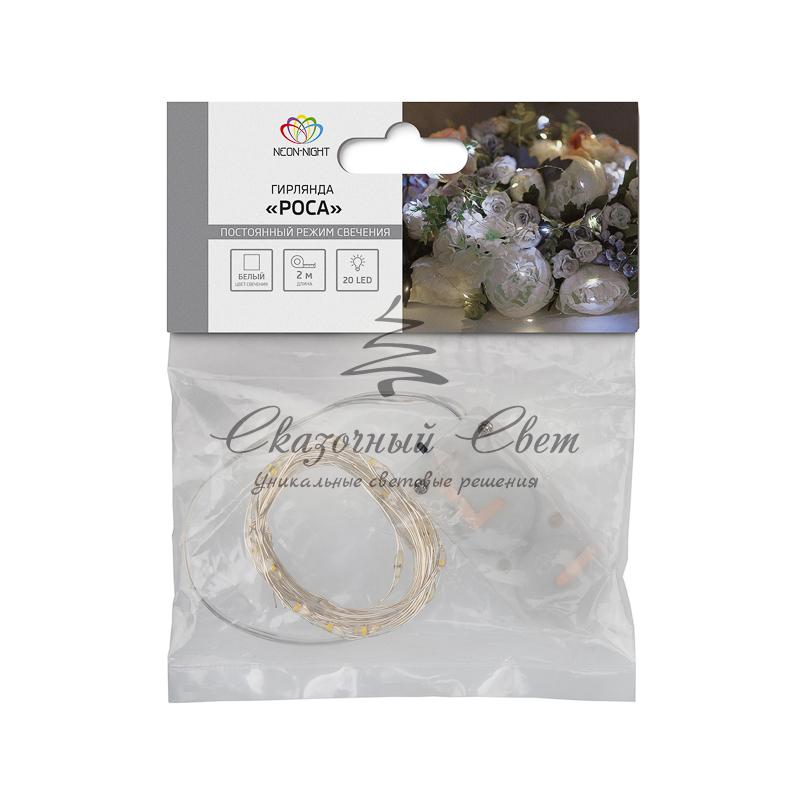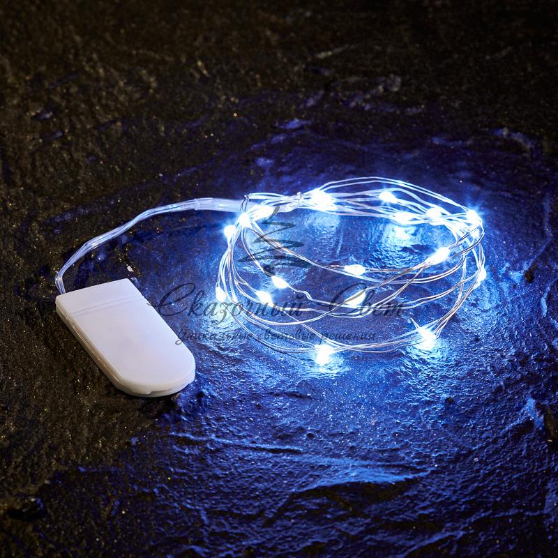 Гирлянда "Роса", 2 м, 20 диодов, цвет белый, тонкий батарейный блок купить в интернет-магазине Сказочный свет
