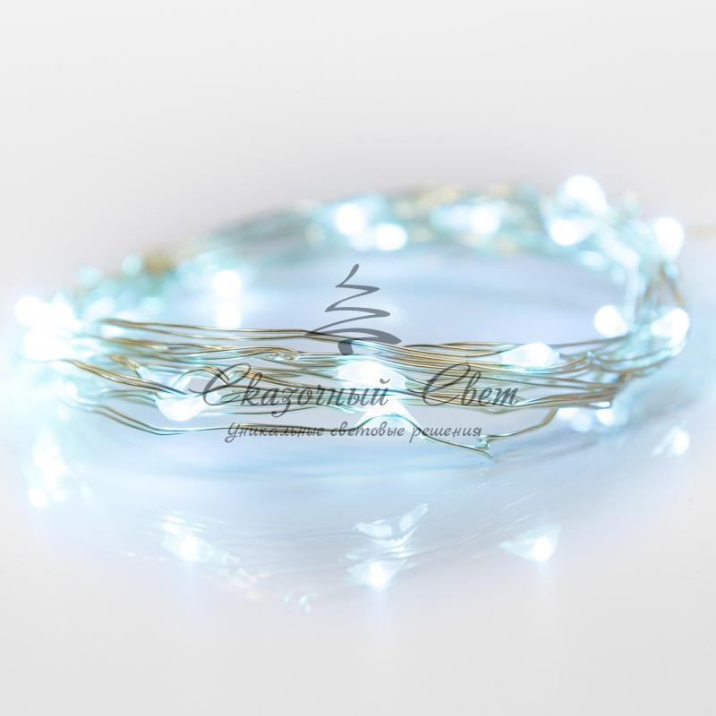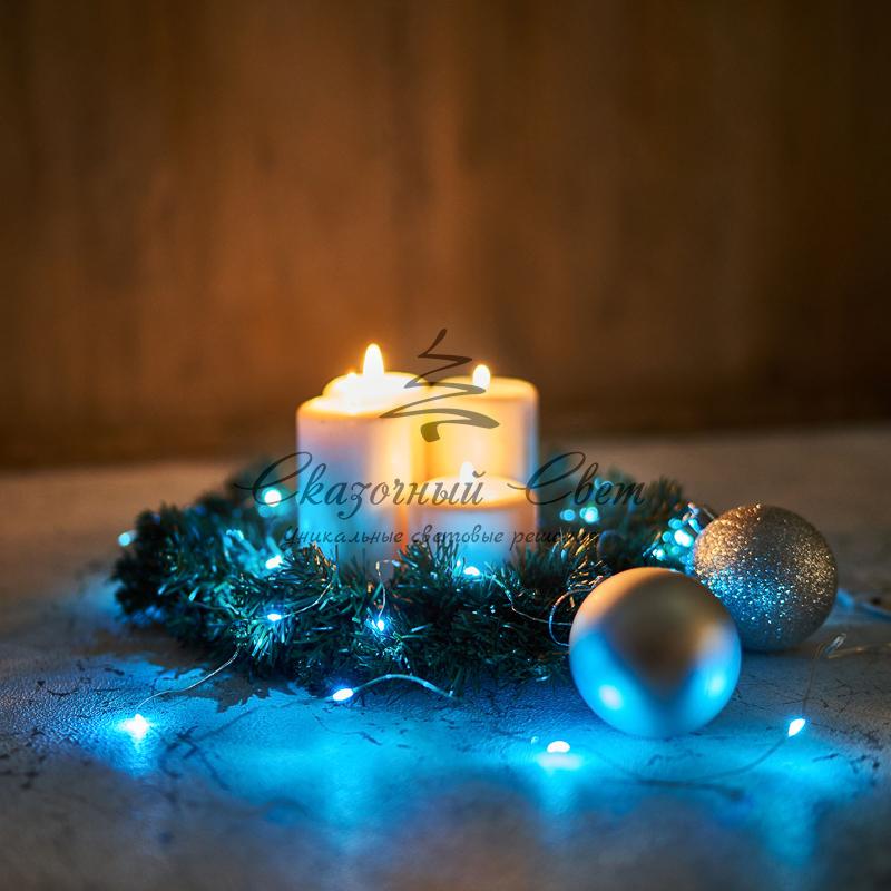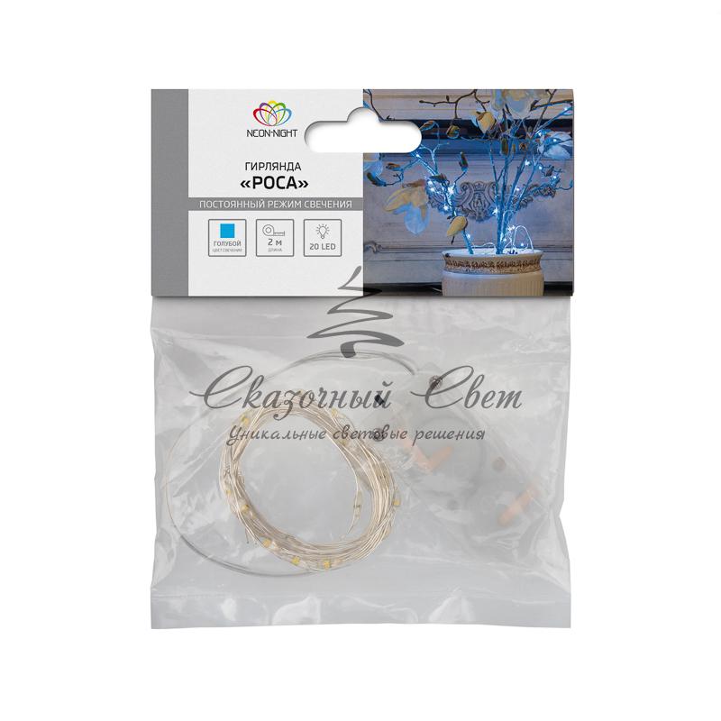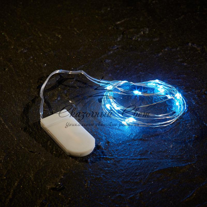 Гирлянда "Роса", 2 м, 20 диодов, цвет голубой, тонкий батарейный блок купить в интернет-магазине Сказочный свет