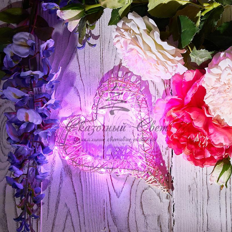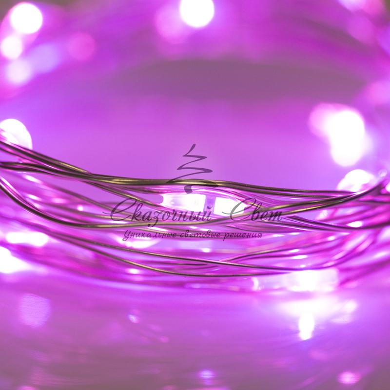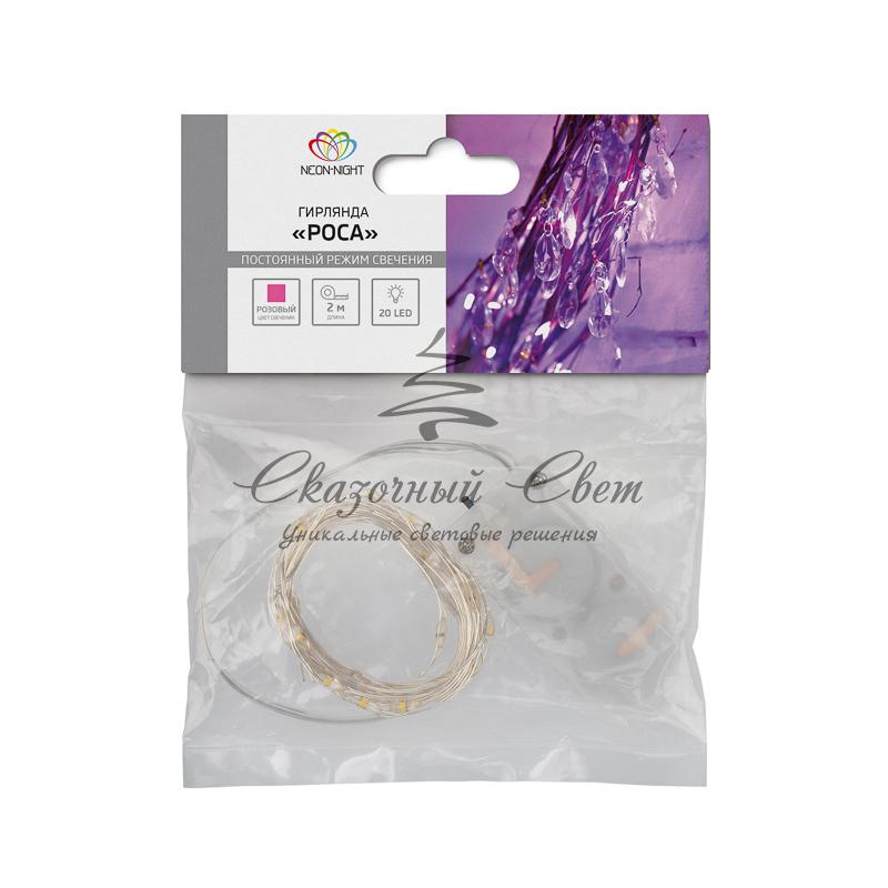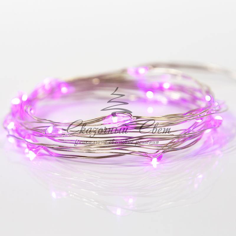 Гирлянда "Роса", 2 м, 20 диодов, цвет розовый, тонкий батарейный блок купить в интернет-магазине Сказочный свет