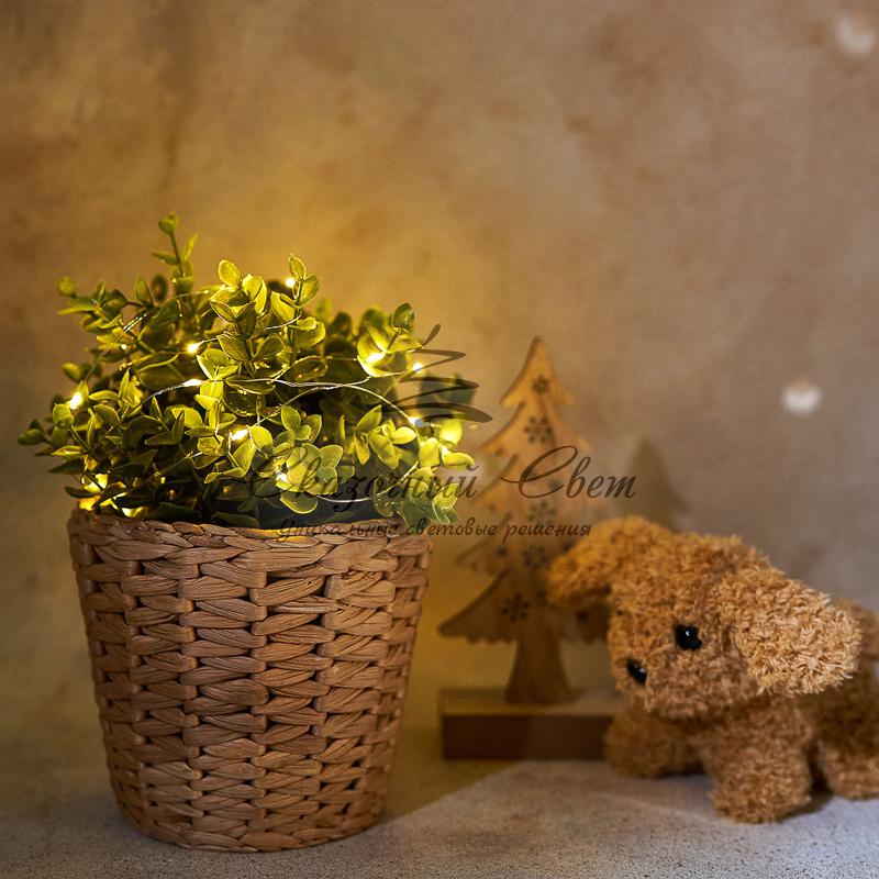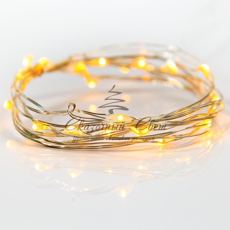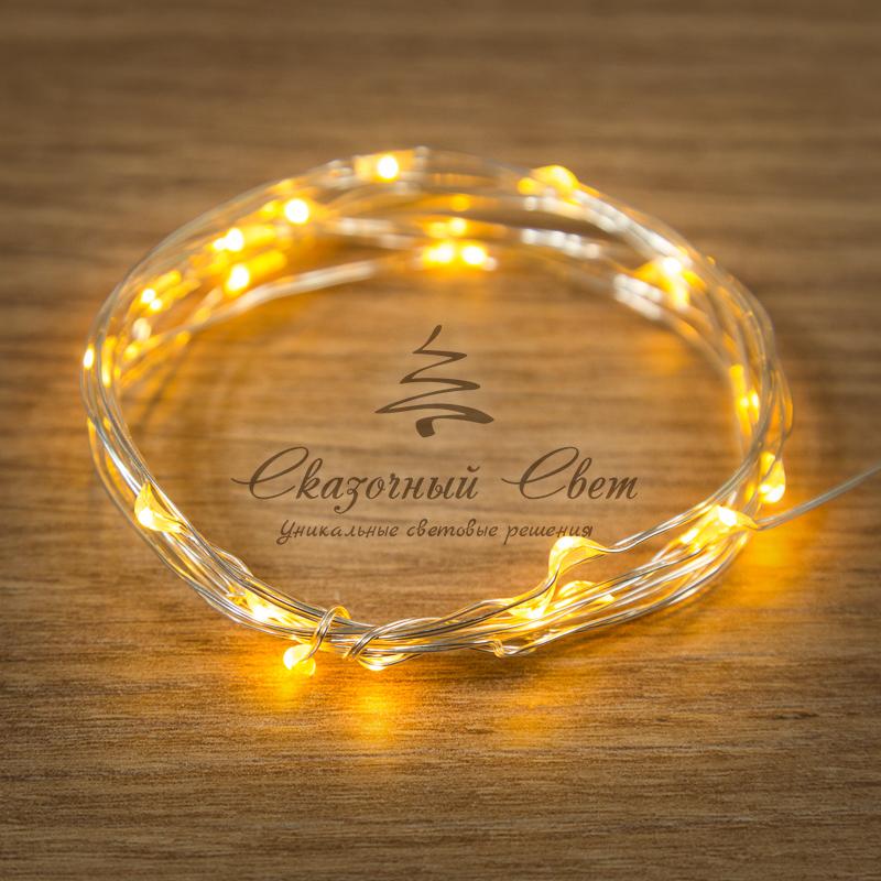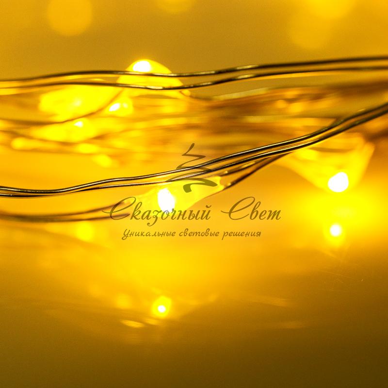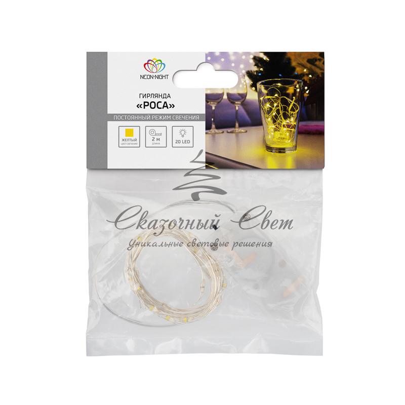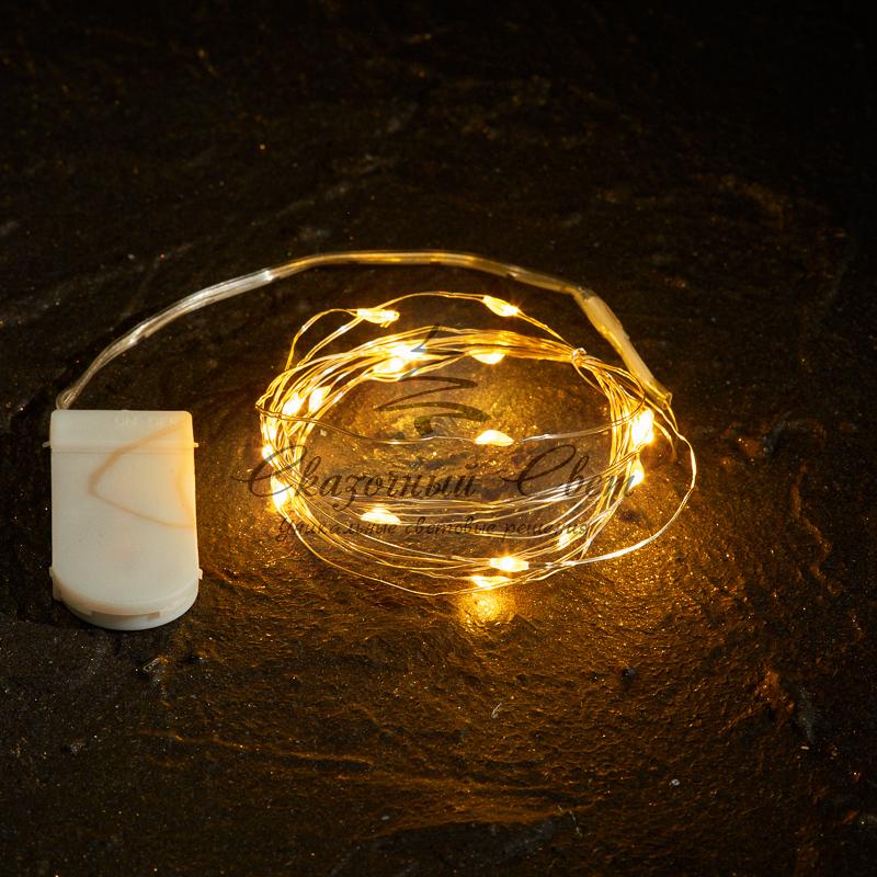 Гирлянда "Роса", 2 м, 20 диодов, цвет желтый, тонкий батарейный блок купить в интернет-магазине Сказочный свет