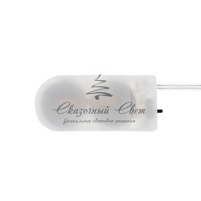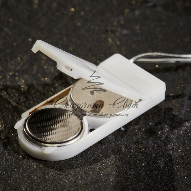 Гирлянда «Роса» длиной 2 метра питается от двух элементов типа CR2032, которые находятся в батарейном блоке на конце провода. Независимость от розетки открывает большие возможности в создании светового декора, а гибкий кабель с эффектом памяти позволяет формировать самые сложные фигуры.Благодаря абсолютной безопасности способа питания, изделие прекрасно подходит для оформления детских комнат. 20 диодов светятся яркими желтыми огнями и работают до 48 часов от одного комплекта батареек.