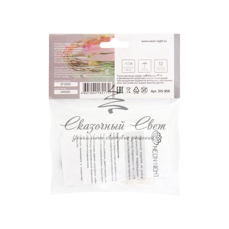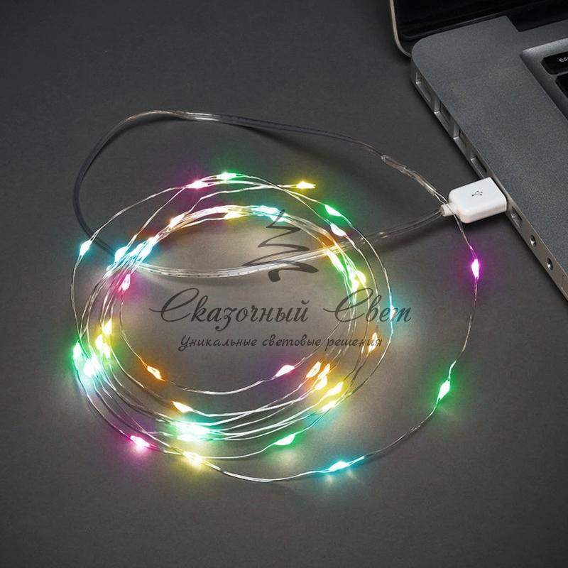 Гирлянда «Роса» 2 м, 20 диодов, USB, цвет RGB купить в интернет-магазине Сказочный свет