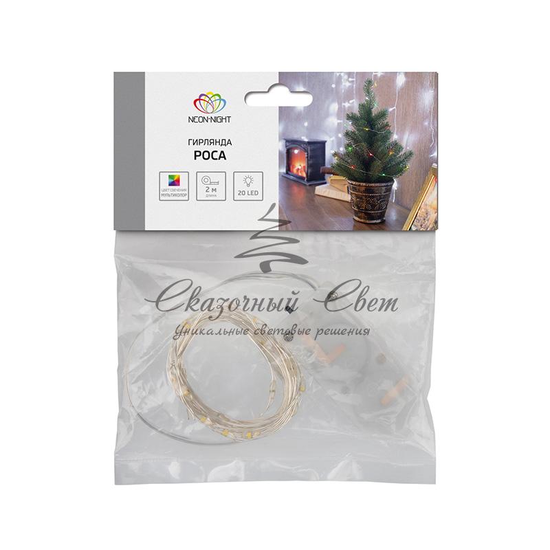 Гирлянда «Роса» 2 м, 20 LED, цвет свечения мультиколор, тонкий батарейный блок NEON-NIGHT купить в интернет-магазине Сказочный свет