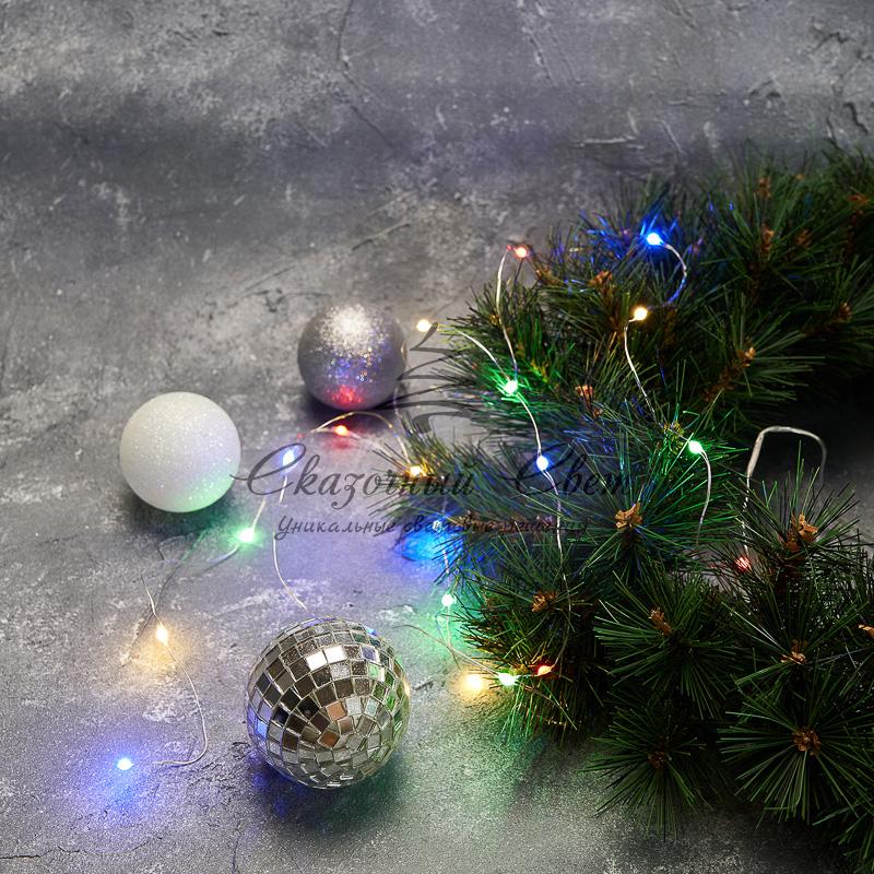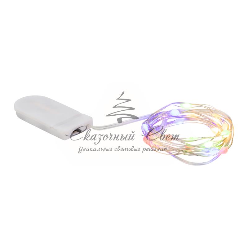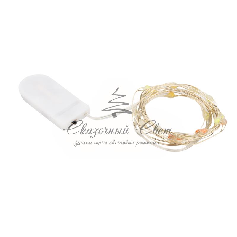 Гирлянда «Роса» с крупными каплями 2 м, 20 LED, цвет свечения мультиколор, 2хCR2032 в комплекте, тонкий батарейный блок NEON-NIGHT купить в интернет-магазине Сказочный свет