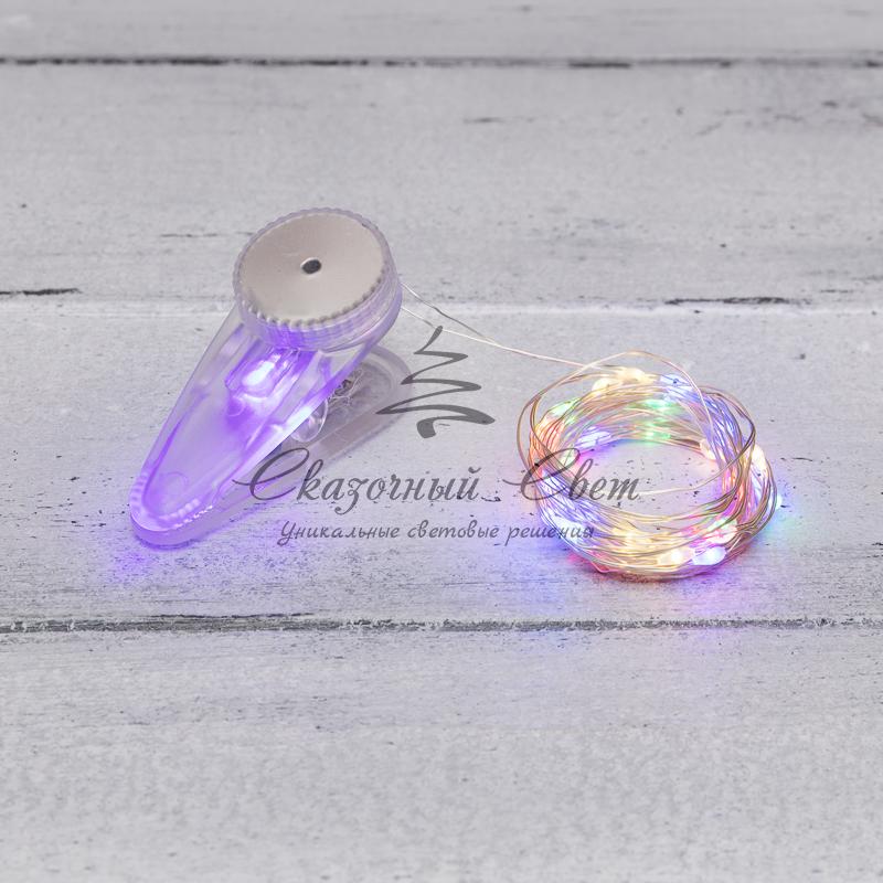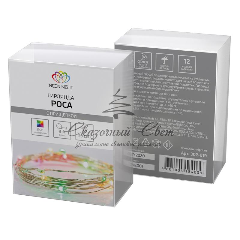 Гирлянда «Роса» с прищепкой 3 м, 30 LED, цвет свечения мультиколор, 2хCR2032 в комплекте NEON-NIGHT купить в интернет-магазине Сказочный свет