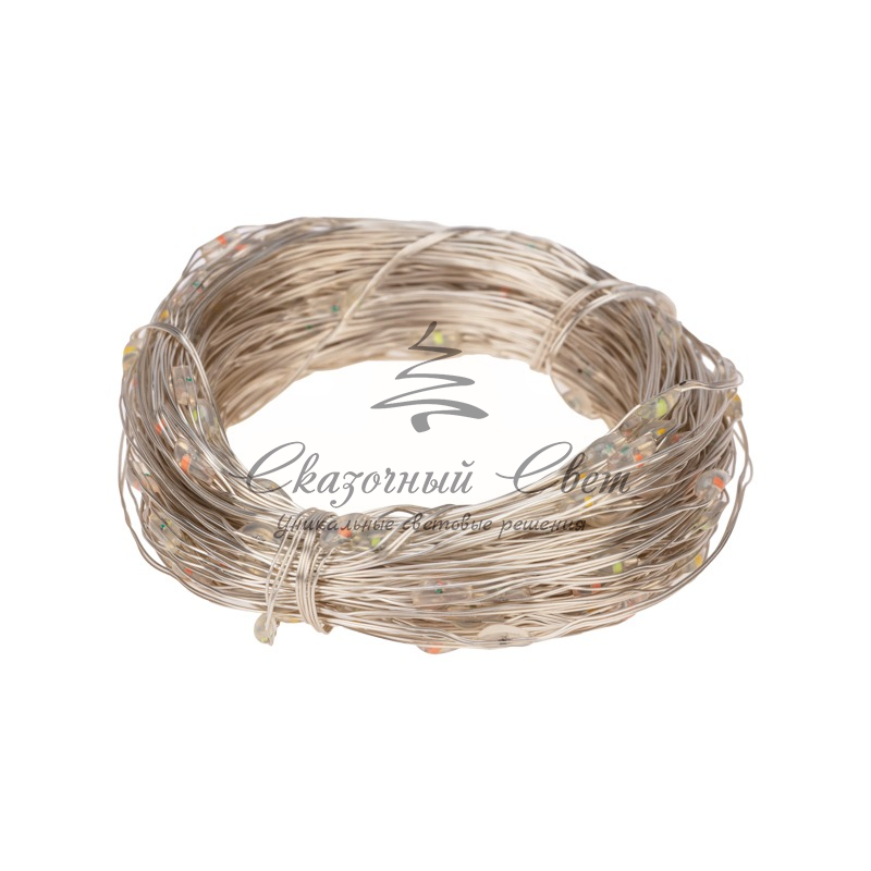 Гирлянда состоит из тонкого провода длиной 20 метров, с расположенными на нем 200 долговечными светодиодами в цвете мультиколор.